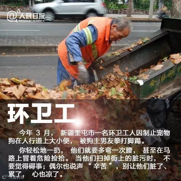 近日,北京一快递员被辱骂、掌掴,引发热议。你我身边,有环卫工劝阻乱扔垃圾遭暴打,有服务员被暴戾顾客恶语相向,有乘务员被泼热水……他们,有的拿着微薄工资,但干着最脏最累的活。请给他们应有的理解和尊重:职业没有贵贱,请记得对他们说声“谢谢”!