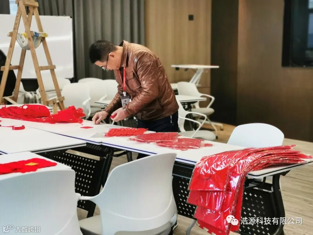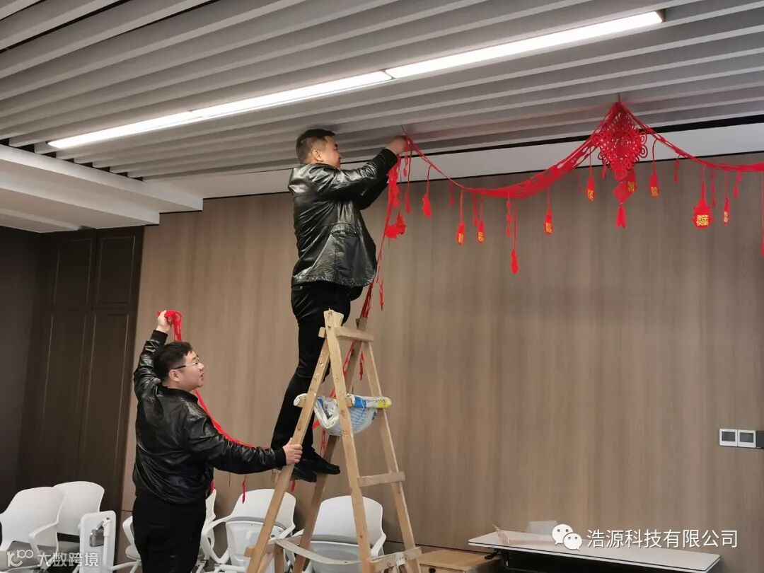 员工亲手布置公司 新年新春 新面貌