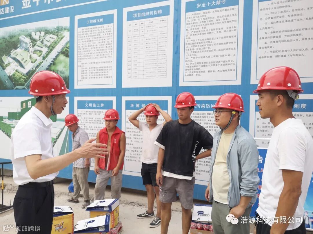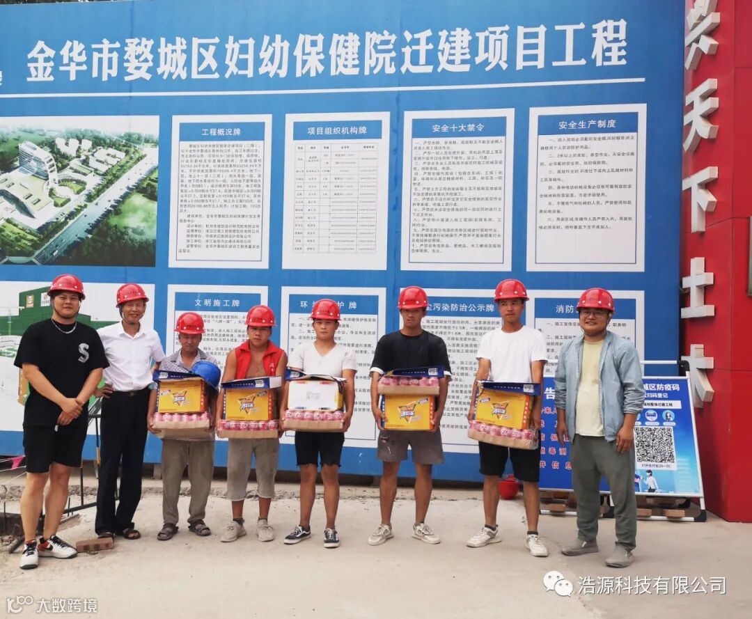 7月15日下午,浩源科技有限公司在党支部书记叶向阳、工会主席李跃成的带领下,对在各个项目一线施工的员工开展“夏日送清凉”活动,发放防暑降温用品,积极预防高温中暑,切实保障员工身体健康,为保持正常的施工生产秩序创造有利条件。