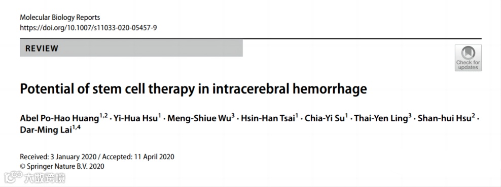 2020年5月,台湾大学的研究人员发表了名为《Potential of stem cell therapy in intracerebral hemorrhage》的研究文章,综述分析了PubMed上100多篇间充质干细胞治疗中风的文献,收集到的临床研究数据表明,间充质干细胞治疗能有效改善脑出血后的功能恢复。