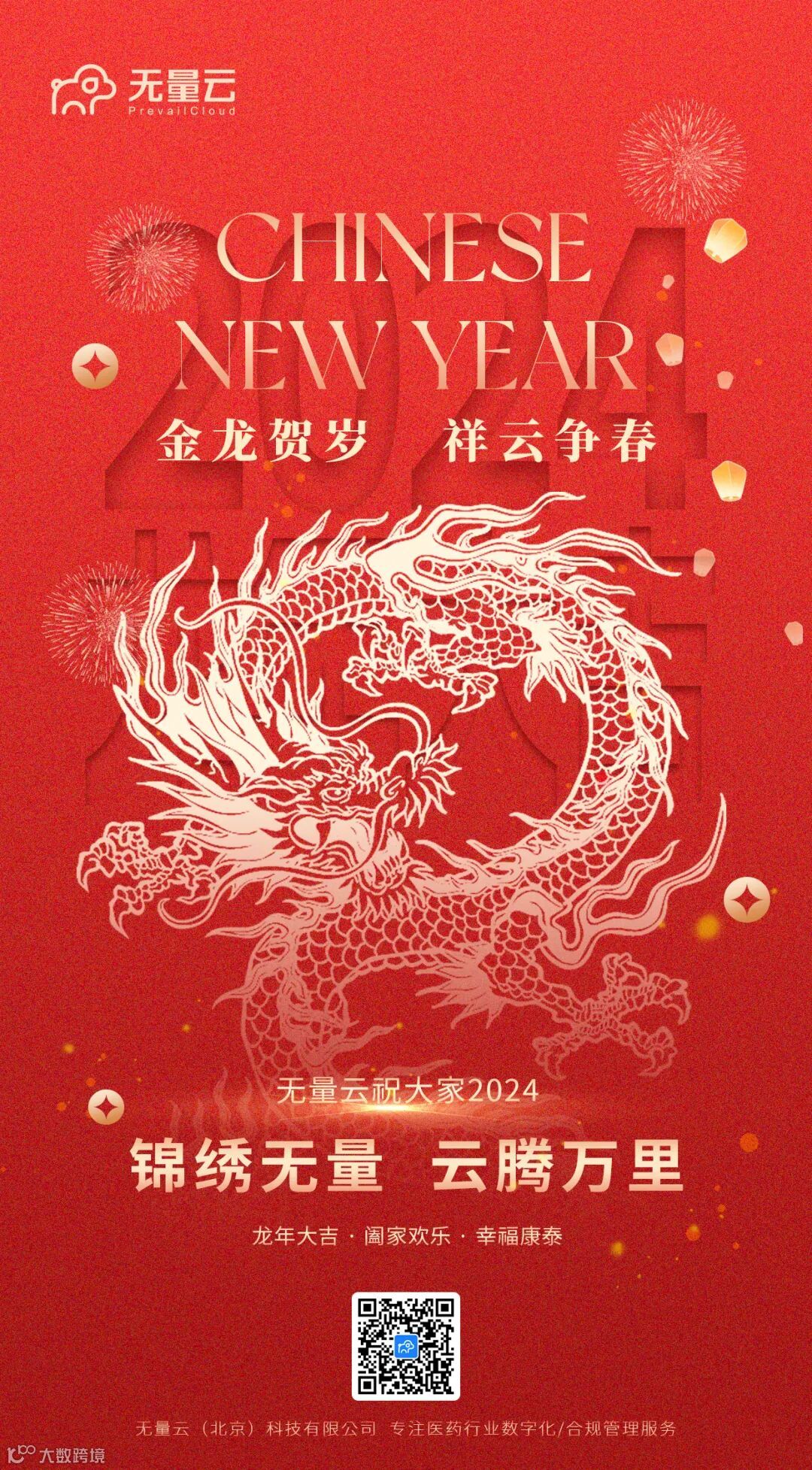 除夕守岁,翘盼新春,新春佳节到来,无量云祝您 :如阳光般明媚,如春花般绚烂,如春风般顺意。愿您在新的一年里,勇往直前,追逐梦想;锦绣无量,云腾万里,创造属于自己的精彩人生。