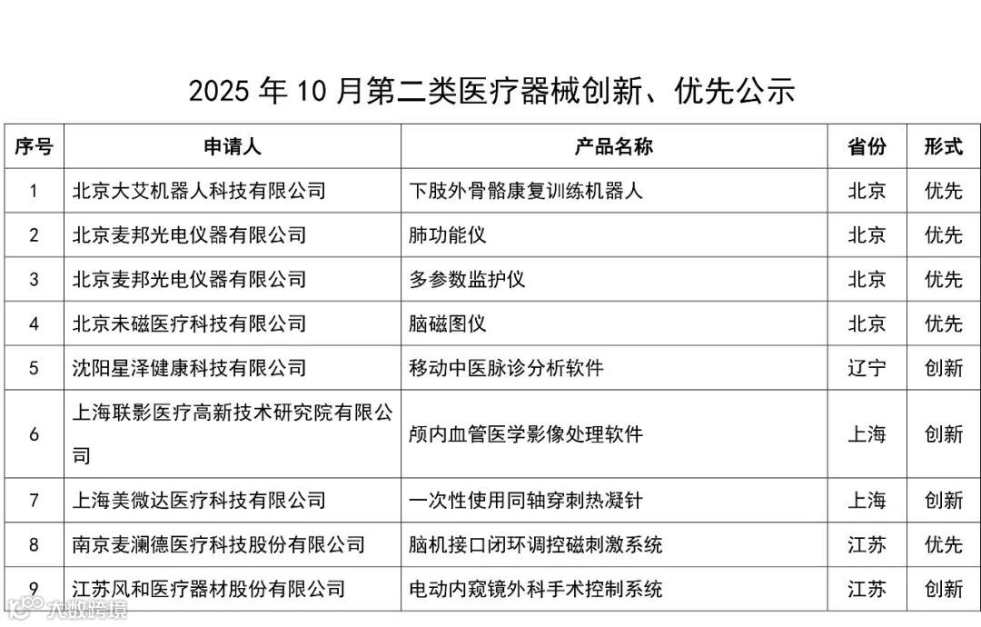 10月,有16项第二类医疗器械产品进入创新、优先程序,以下是汇总信息: