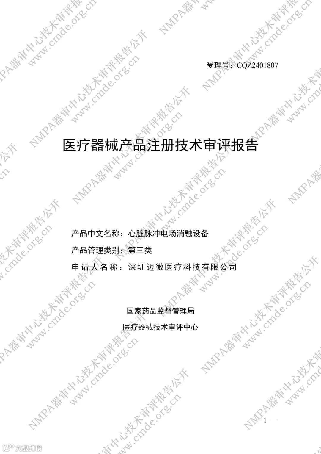 器审中心发布“心脏脉冲电场消融设备”注册技术审评报告,以下是全文内容: