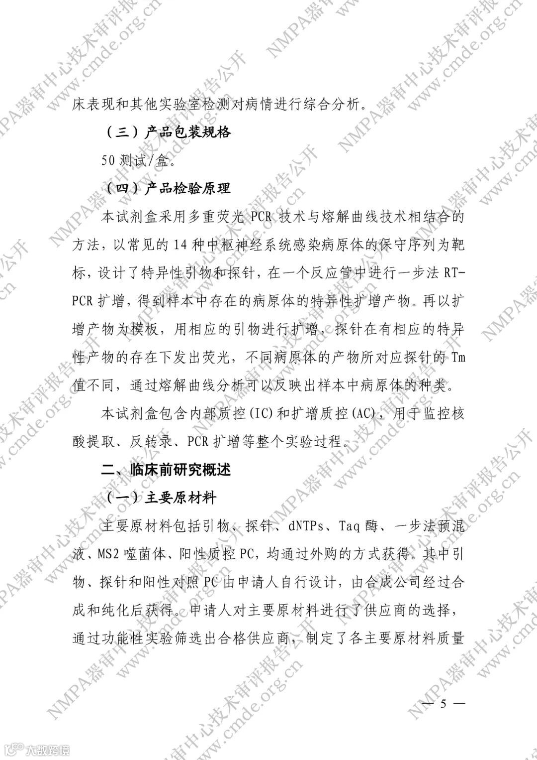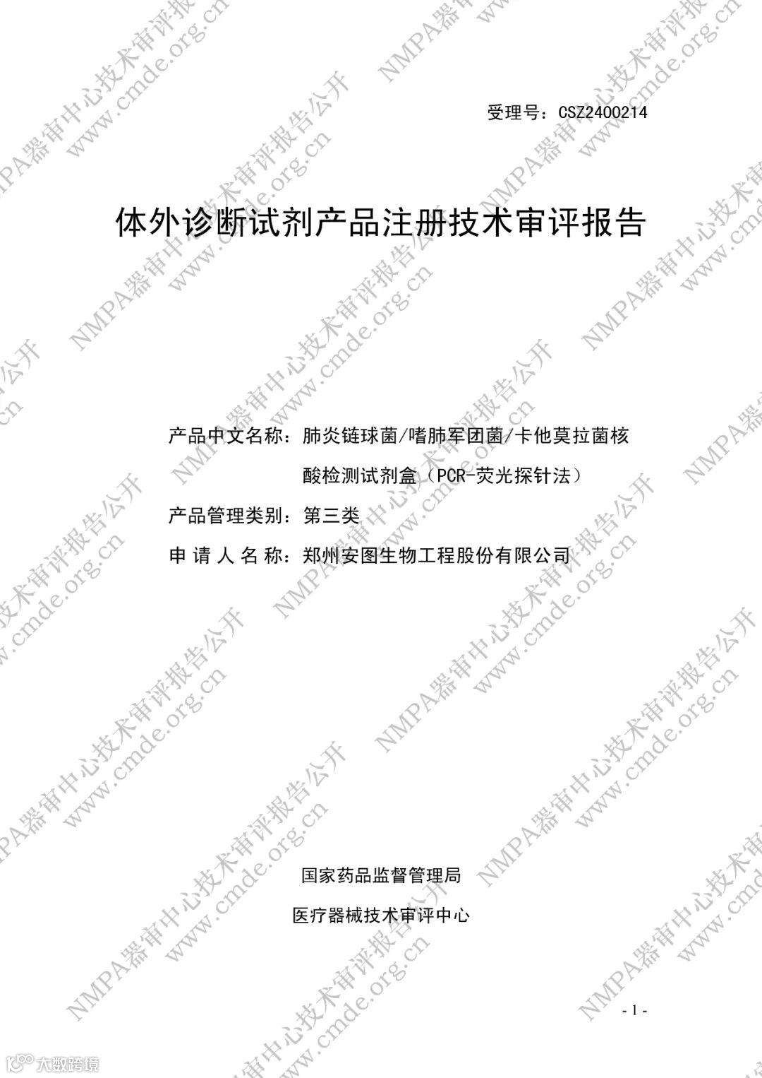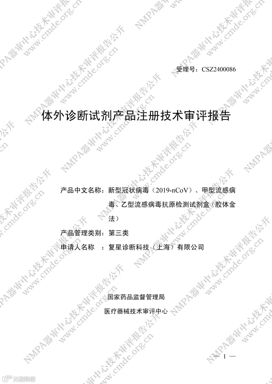 近日,器审中心发布了十四项中枢神经感染病原体核酸检测试剂盒(荧光PCR熔解曲线法)、肺炎链球菌/嗜肺军团菌/卡他莫拉菌核酸检测试剂盒(PCR-荧光探针法)、新型冠状病毒(2019-nCoV)、甲型流感病毒、乙型流感病毒抗原检测试剂盒(胶体金法)、碳青霉烯耐药基因检测试剂盒(荧光PCR法)等产品的注册技术审评报告,以下是全文内容: