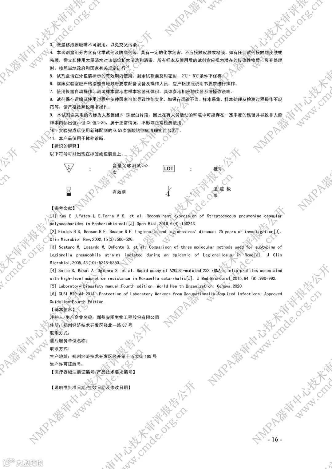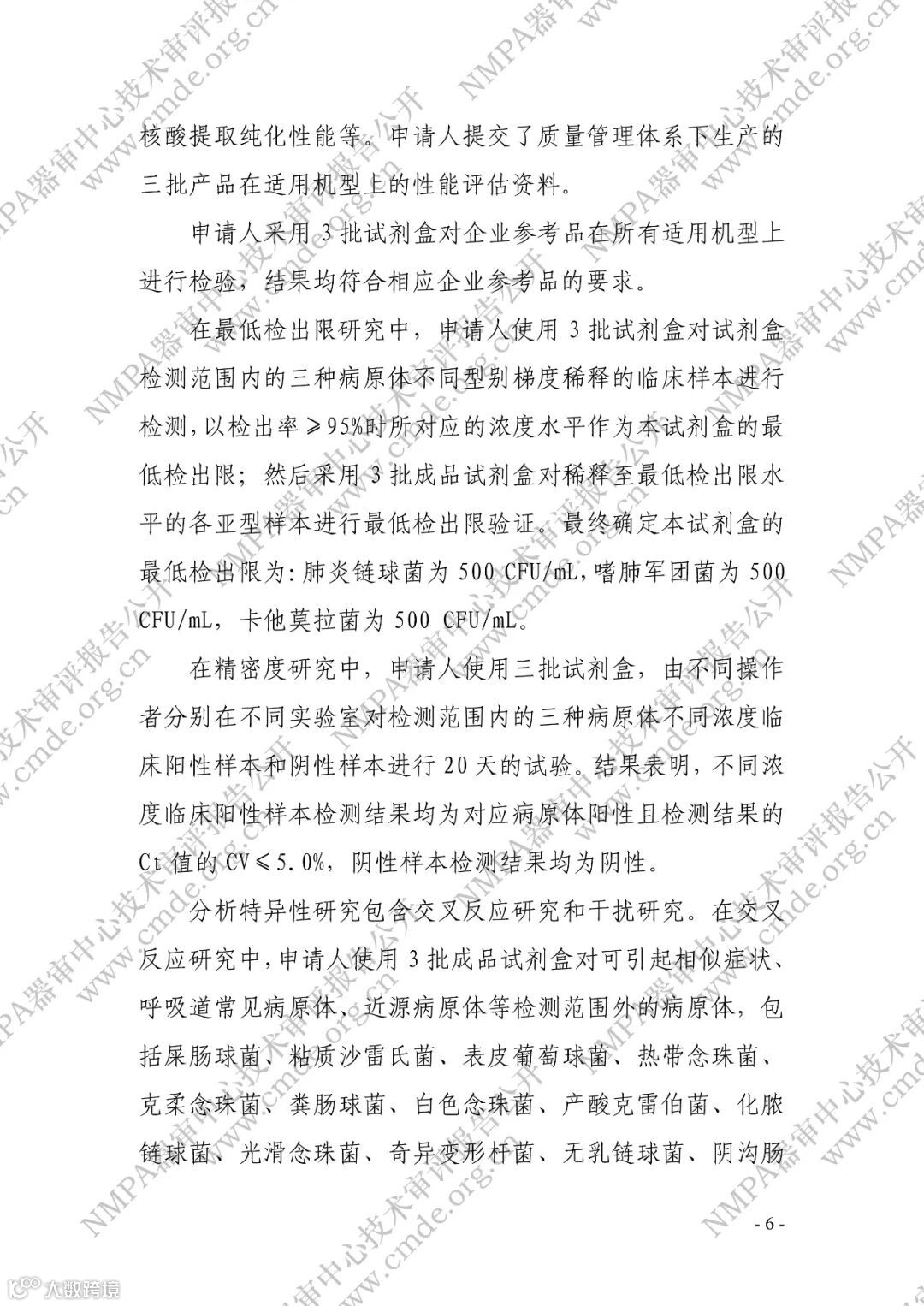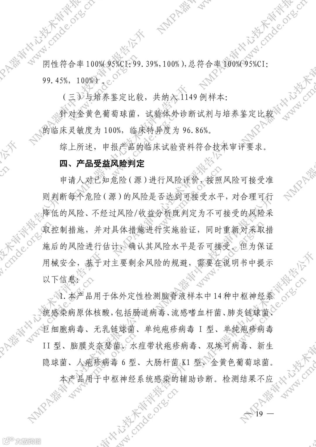 近日,器审中心发布了十四项中枢神经感染病原体核酸检测试剂盒(荧光PCR熔解曲线法)、肺炎链球菌/嗜肺军团菌/卡他莫拉菌核酸检测试剂盒(PCR-荧光探针法)、新型冠状病毒(2019-nCoV)、甲型流感病毒、乙型流感病毒抗原检测试剂盒(胶体金法)、碳青霉烯耐药基因检测试剂盒(荧光PCR法)等产品的注册技术审评报告,以下是全文内容: