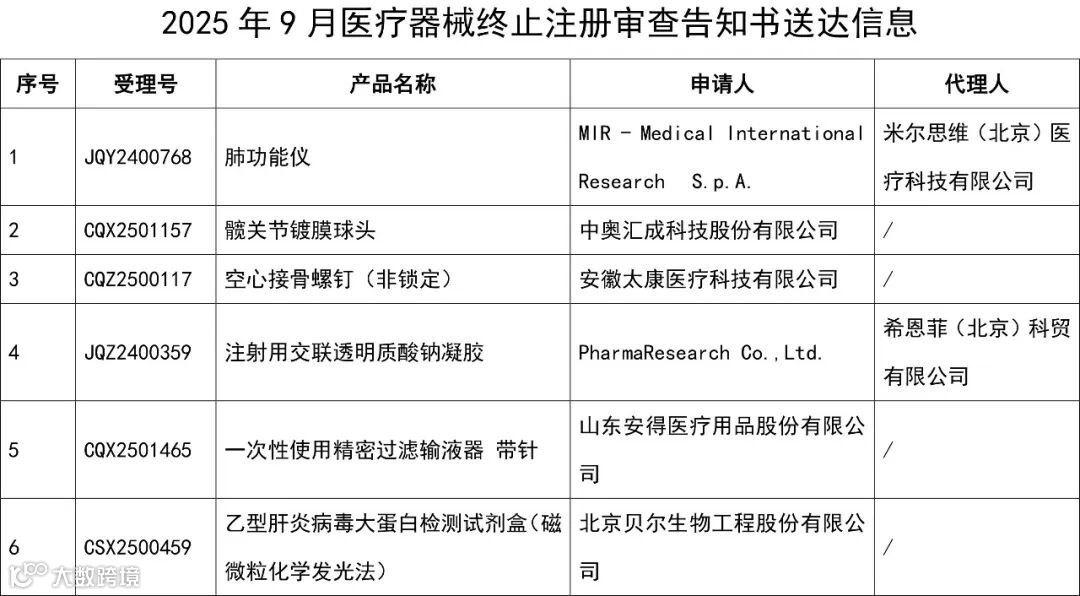 9月,国家药监局共发布48项医疗器械终止注册审查告知书送达信息,详情内容如下: