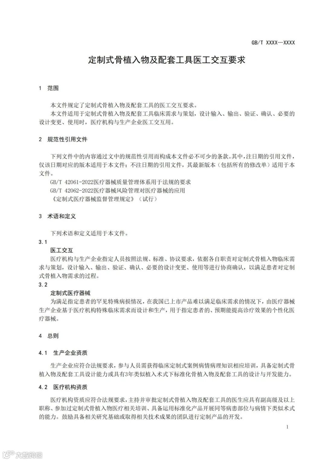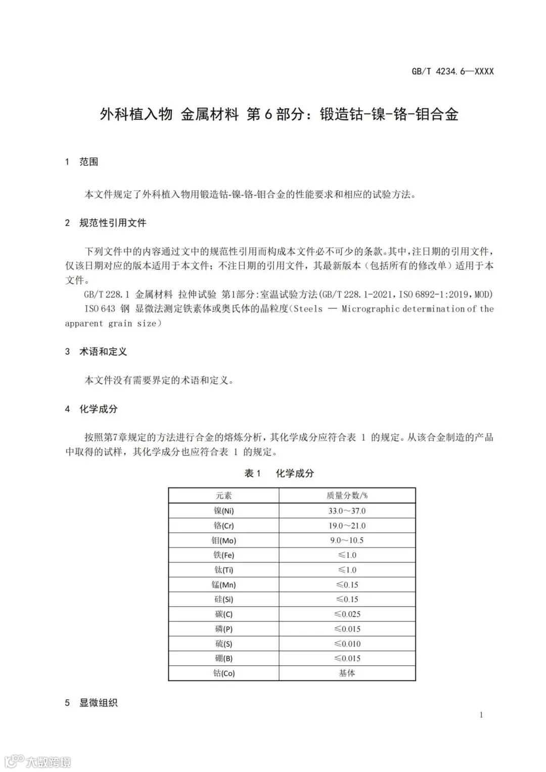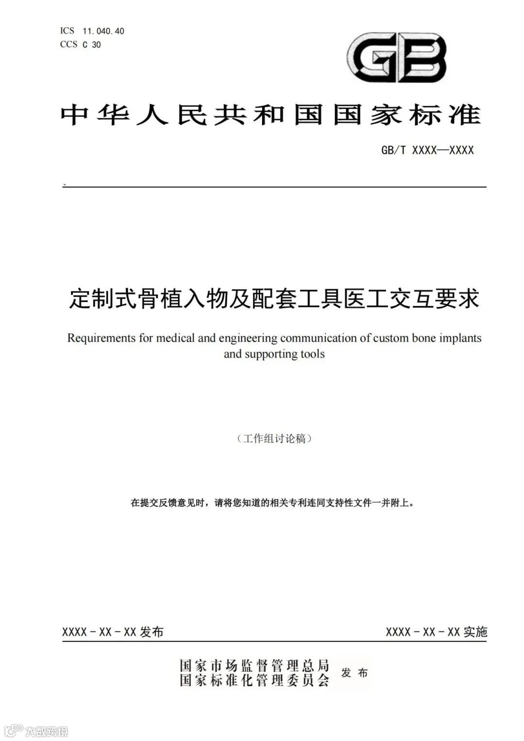 根据《医疗器械标准管理办法》《医疗器械标准制修订工作管理规范》的要求,全国外科植入物和矫形器械标准化技术委员会对《外科植入物 金属材料 第5部分:锻造钴-铬-钨-镍合金》等3项医疗器械国家标准立项申请项目公开征求意见,详情如下: