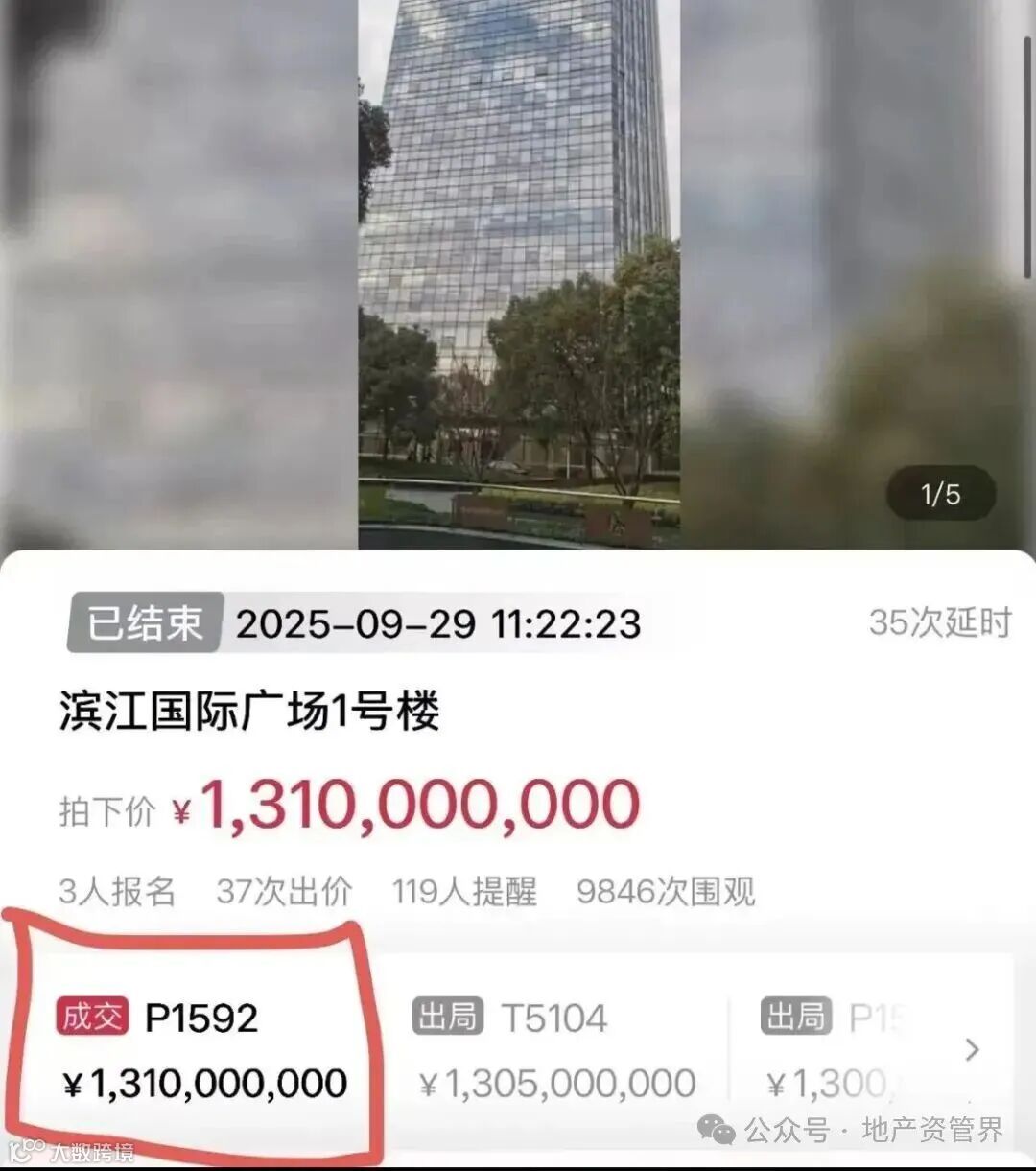 项目从开始到正常出售持续关注,回溯其拍卖历程,2024 年 1 月首次亮相时,21 亿元的起始价让市场望而却步;随后 2 月、2025 年 7 月、8 月三次拍卖均因无人出价流拍,价格也一路下调至 11.3 亿元。