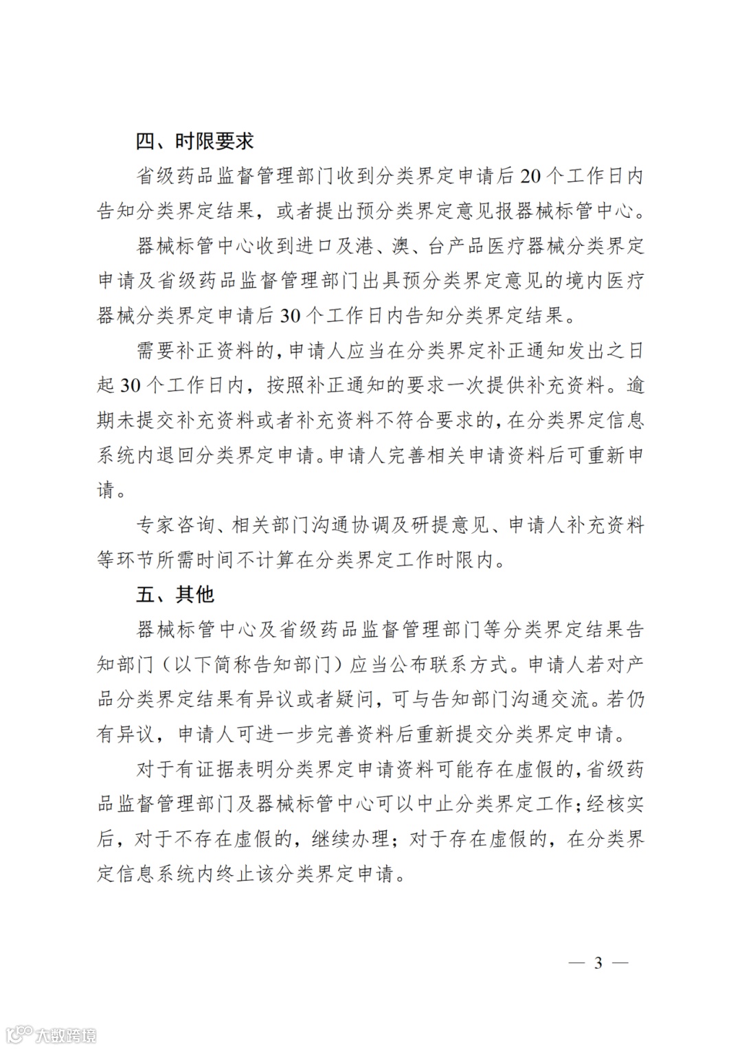 《关于规范医疗器械产品分类界定工作的公告》