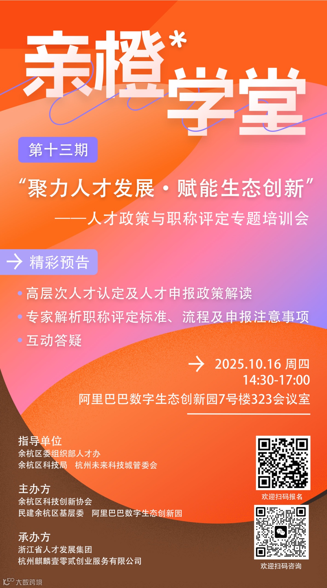 亲橙学堂|人才政策与职称评定专题培训会免费报名啦!