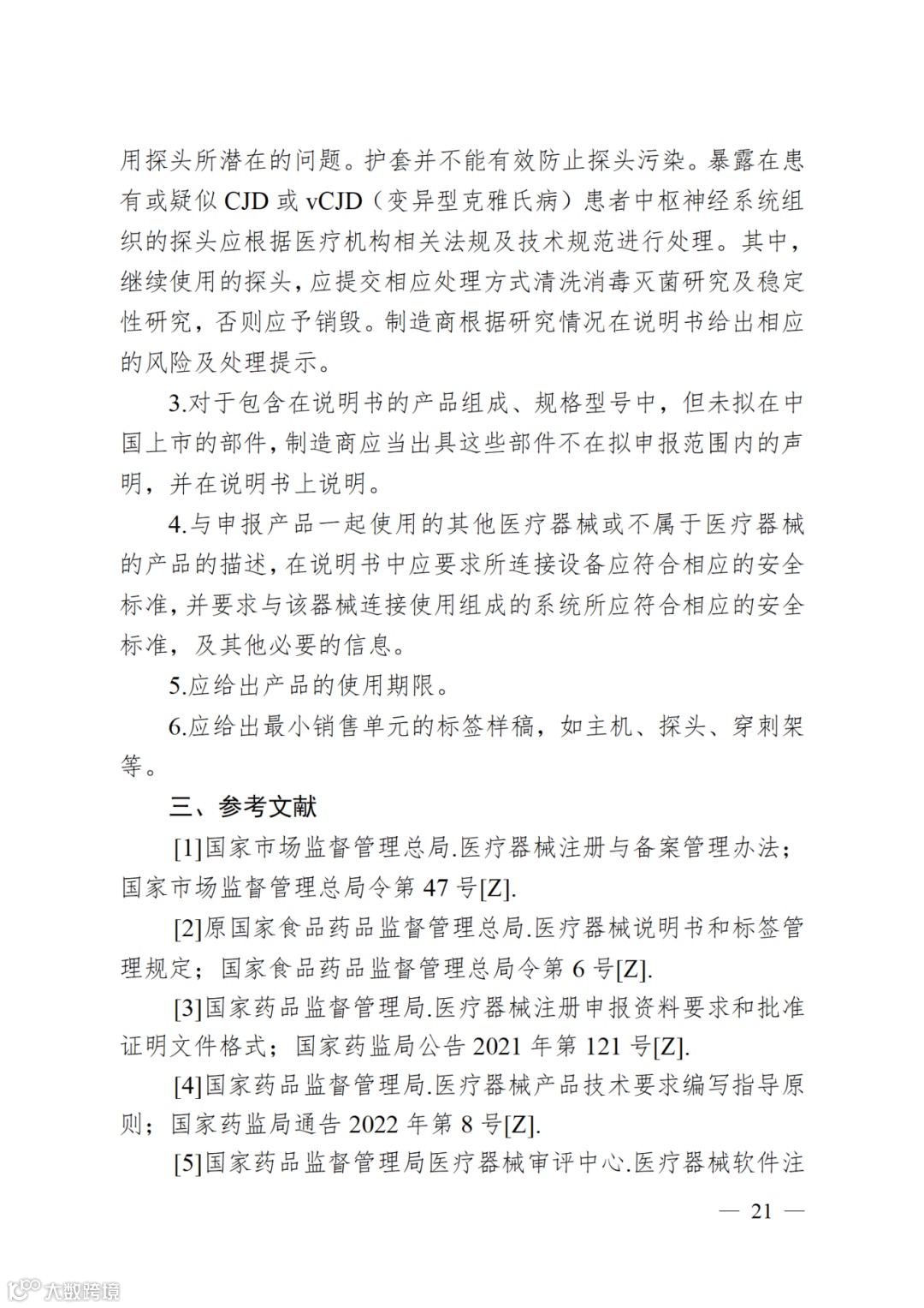 为进一步规范影像型超声诊断设备医疗器械的管理,国家药监局器审中心组织制订了《影像型超声诊断设备(第三类)注册审查指导原则(2023年修订版)》,详情如下: