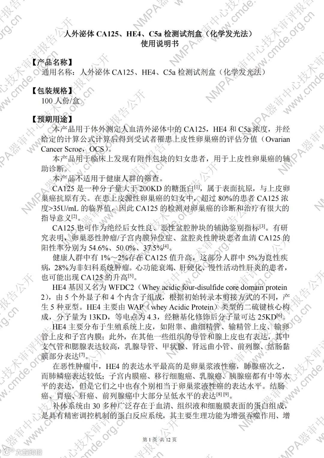 人外泌体CA125、HE4、C5a检测试剂盒(化学发光法)