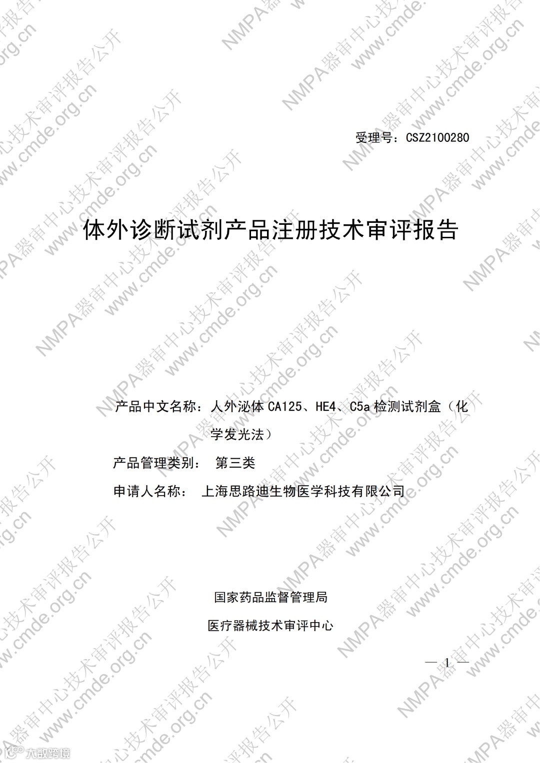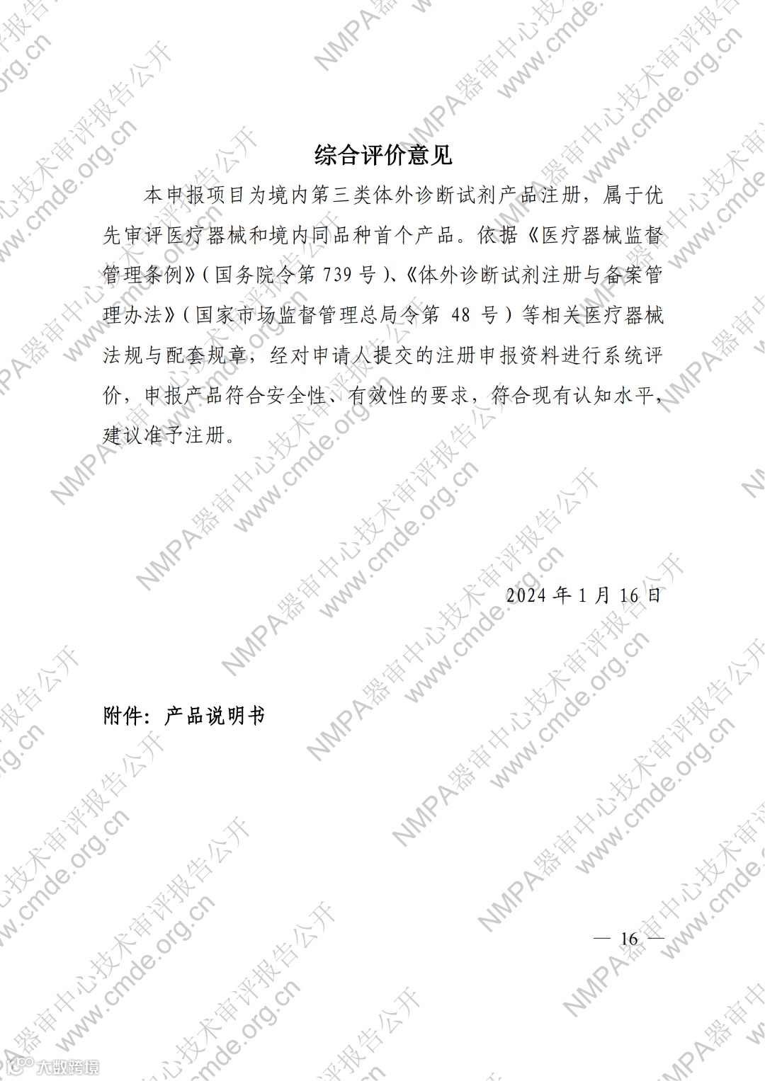 1月30日,器审中心发布了1款三类医疗器械产品和2款体外诊断试剂产品的审评报告。