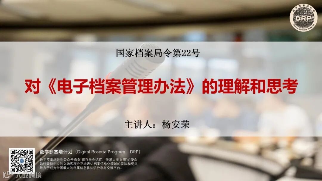 贯彻落实国家档案局令第22号《电子档案管理办法》无疑是今年档案部门的重点工作,但要贯彻落实22号令的指示精神,首先必须深刻领悟和掌握22号令的精髓和内涵。本课程不仅涵盖“背景概述”,重点将对22号令的七个章节、三十八项条款逐一分析,结合讲师多年以来在电子文件归档和电子档案管理领域的实践经验深入浅出地阐释其核心要点,相信会让听众茅塞顿开。