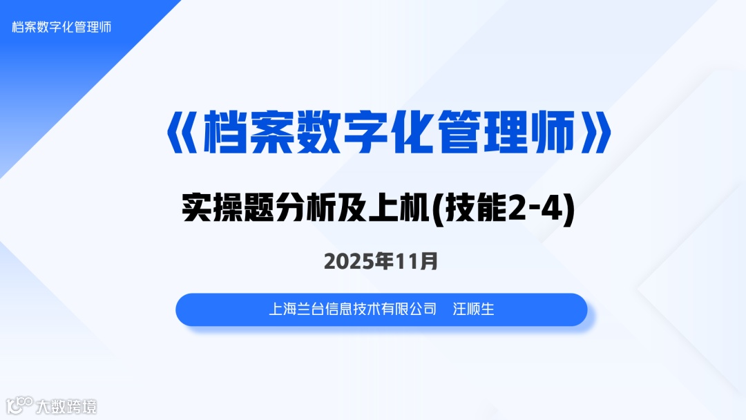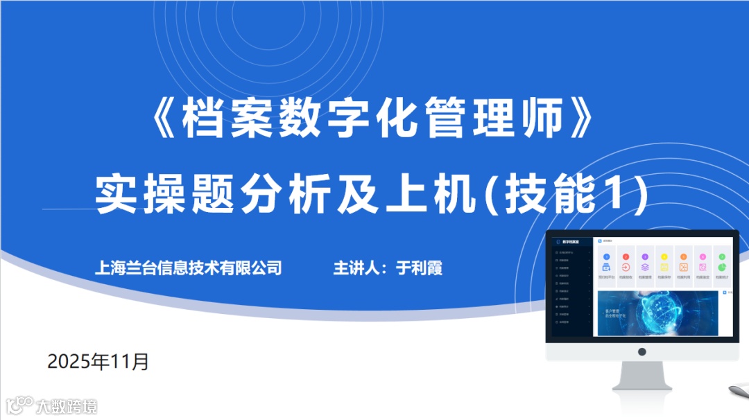 2025年11月17日至11月21日,上海市档案服务和教育中心举办的“档案信息化与档案数字化管理师实操”专题培训班即将在泛微软件园(上海市闵行区三鲁公路3419号)开班。