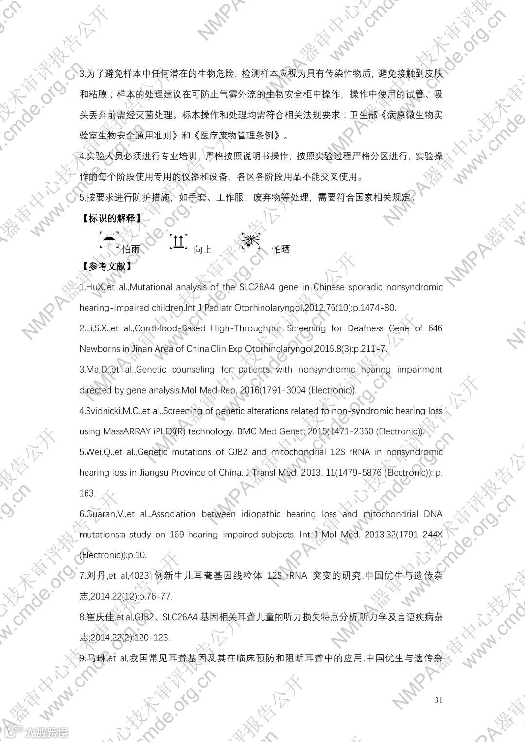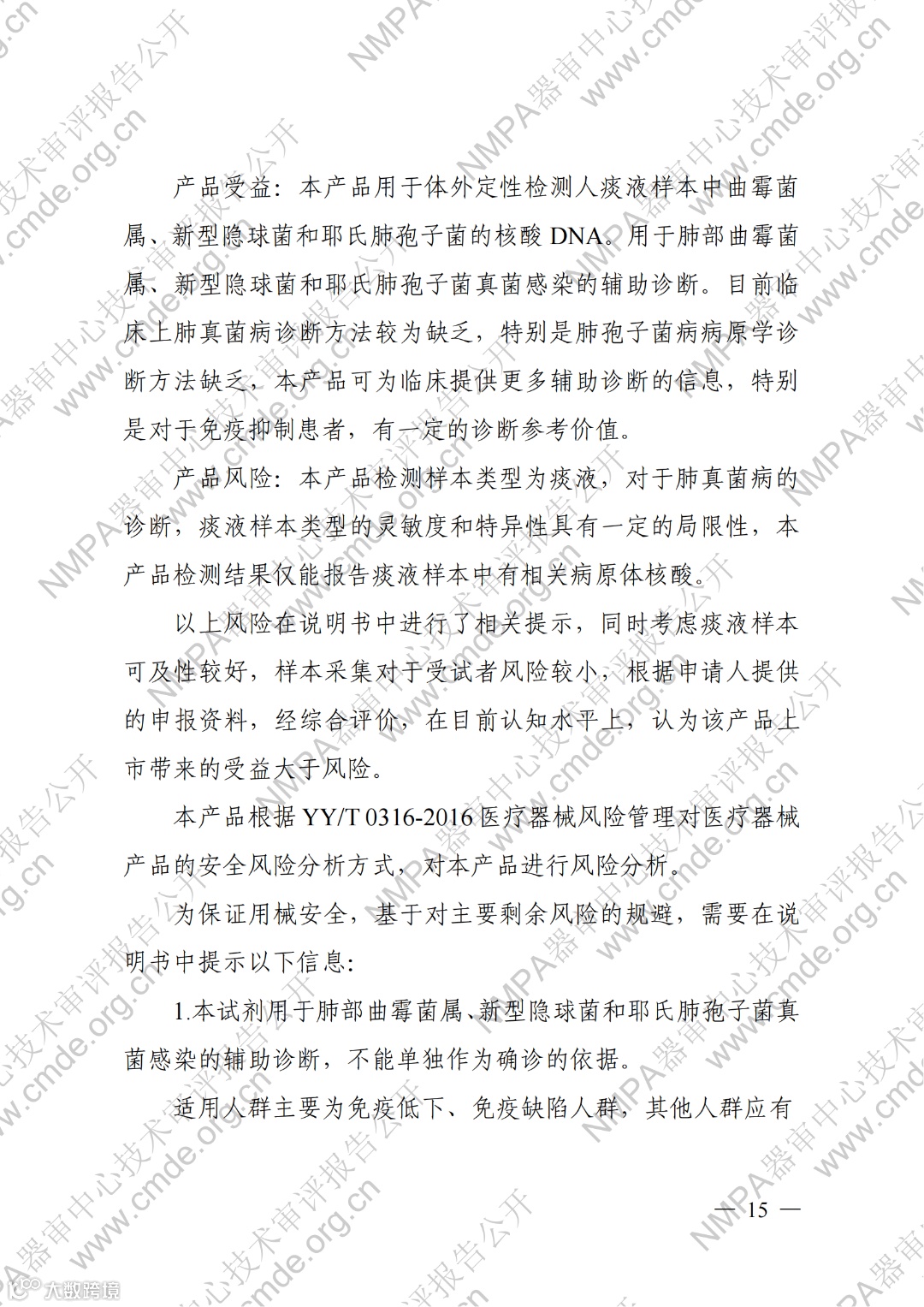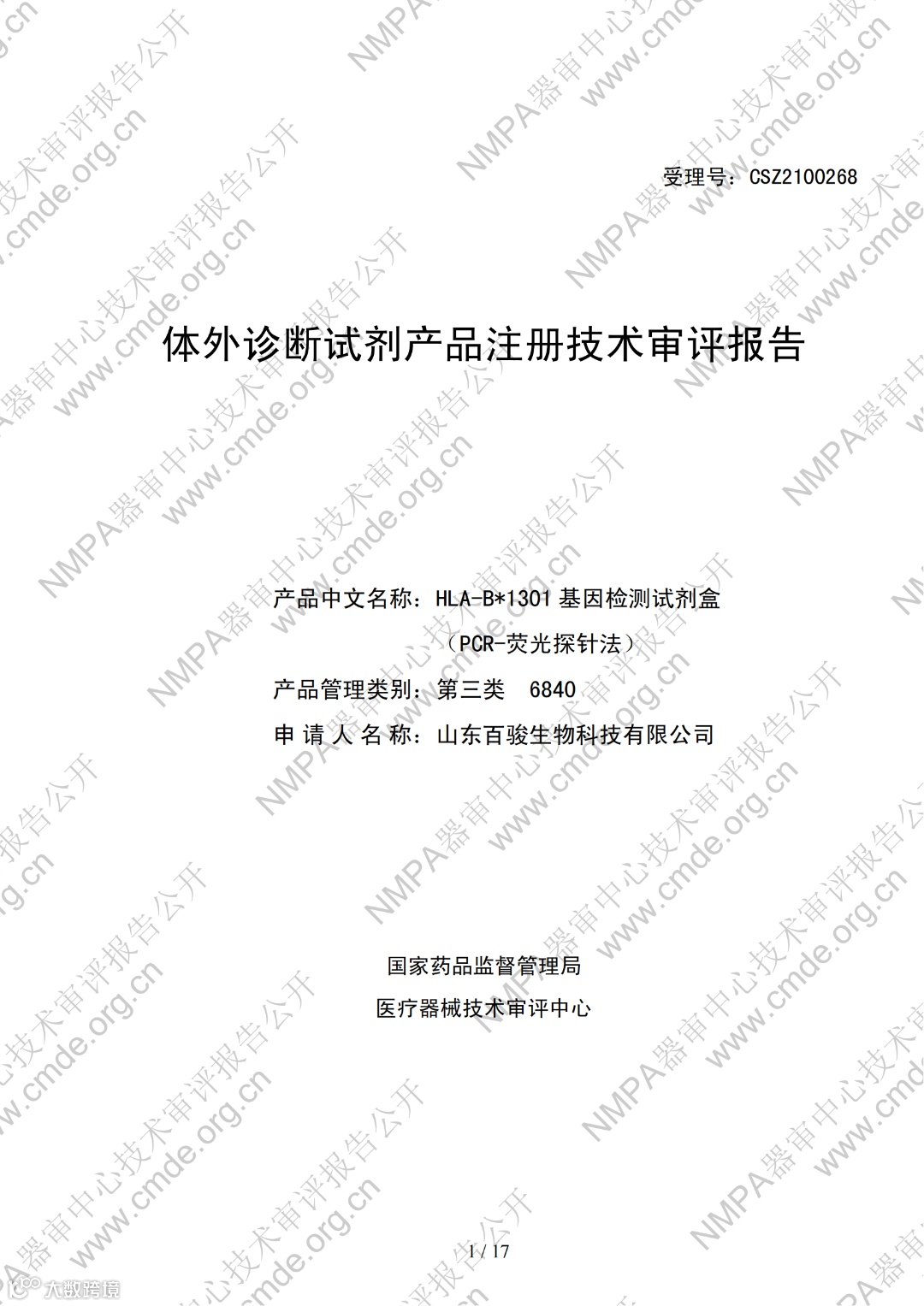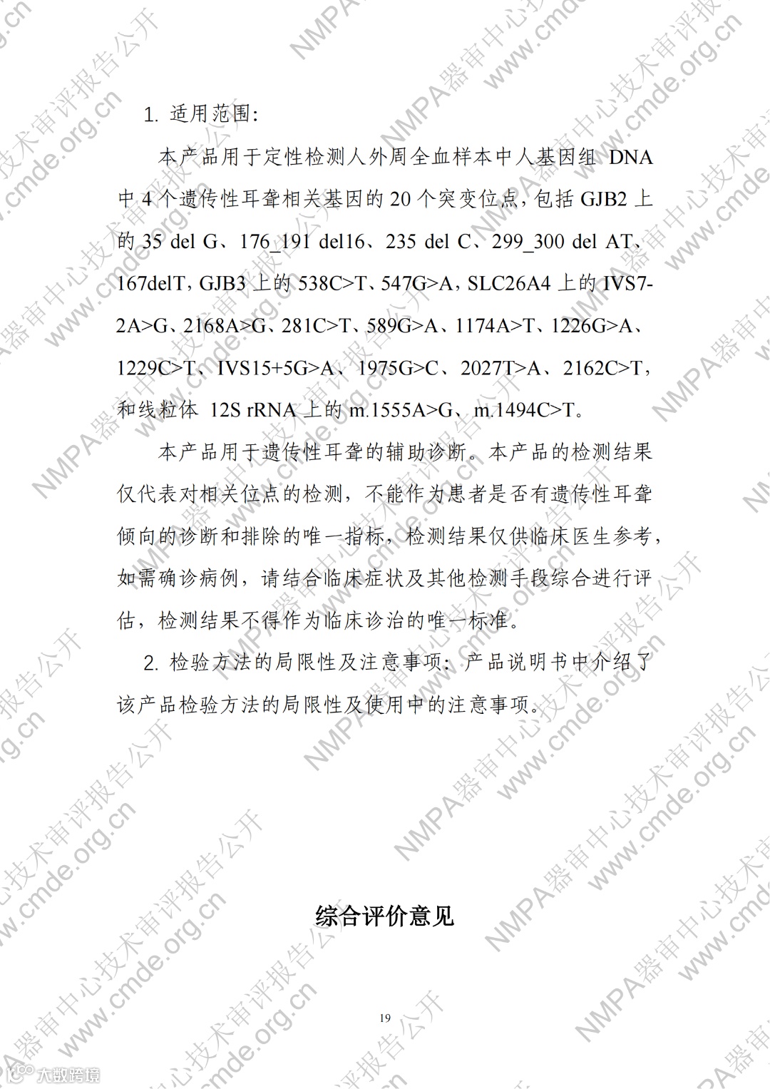 4月10日,器审中心发布了“宫颈细胞学数字病理图像计算机辅助分析软件”1项三类医疗器械产品及“曲霉菌属、新型隐球菌及耶氏肺孢子菌核酸检测试剂盒(PCR荧光探针法)”、“人CYP2C19基因分型检测试剂盒(飞行时间质谱法 )”、“HLA-B_1301基因检测试剂盒(PCR-荧光探针法)”、“二十项遗传性耳聋基因突变检测试剂盒(飞行时间质谱法)”4项体外诊断试剂产品的审评报告,详情如下: