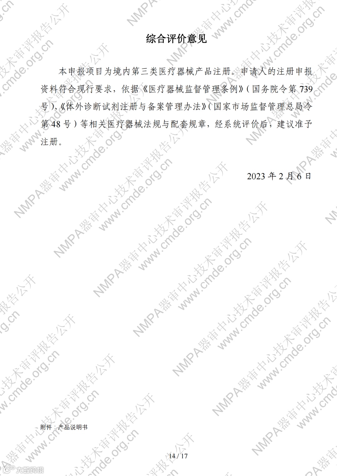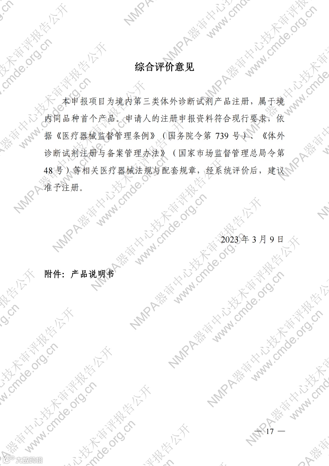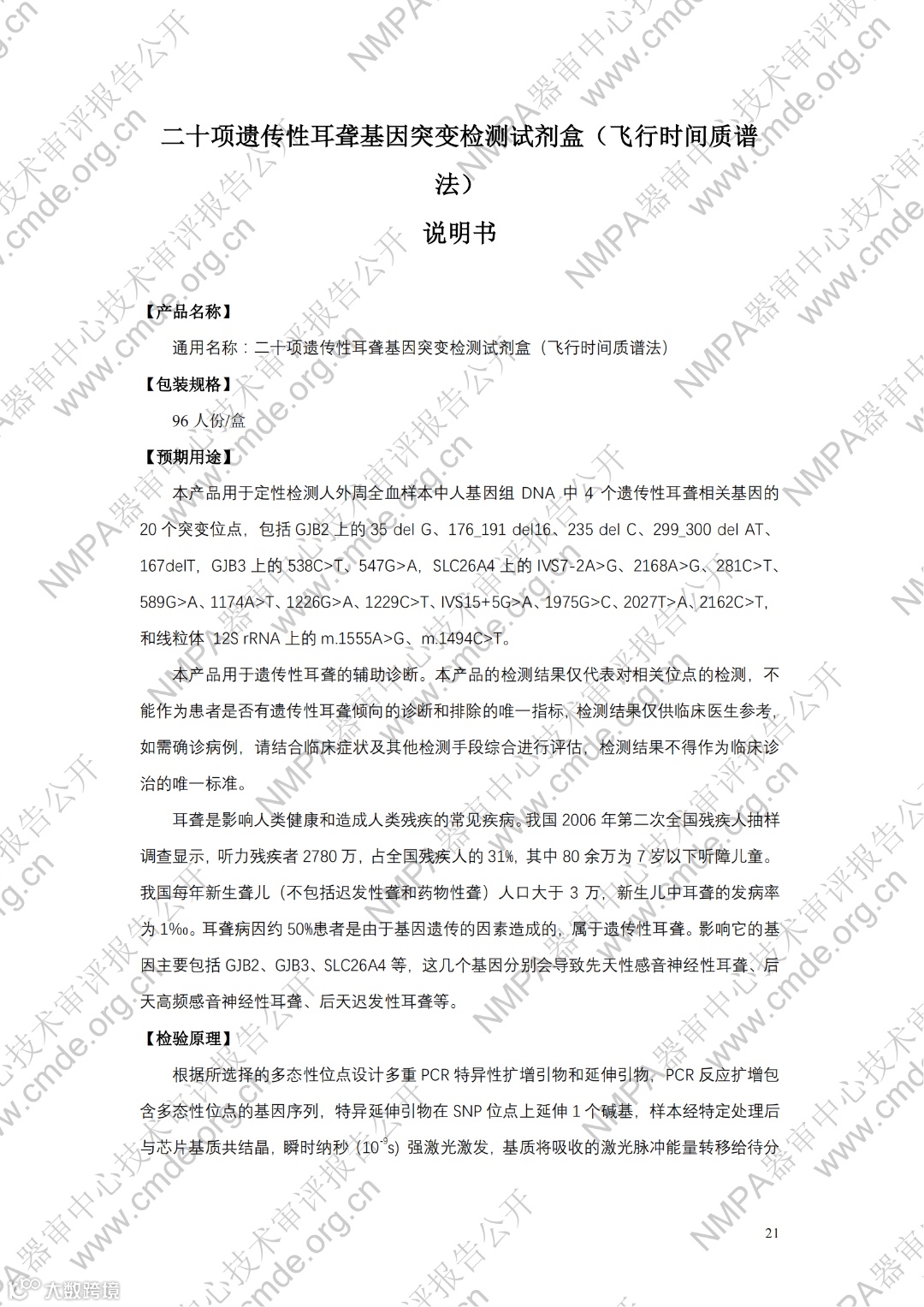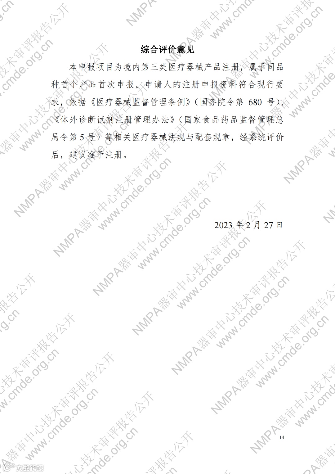 4月10日,器审中心发布了“宫颈细胞学数字病理图像计算机辅助分析软件”1项三类医疗器械产品及“曲霉菌属、新型隐球菌及耶氏肺孢子菌核酸检测试剂盒(PCR荧光探针法)”、“人CYP2C19基因分型检测试剂盒(飞行时间质谱法 )”、“HLA-B_1301基因检测试剂盒(PCR-荧光探针法)”、“二十项遗传性耳聋基因突变检测试剂盒(飞行时间质谱法)”4项体外诊断试剂产品的审评报告,详情如下: