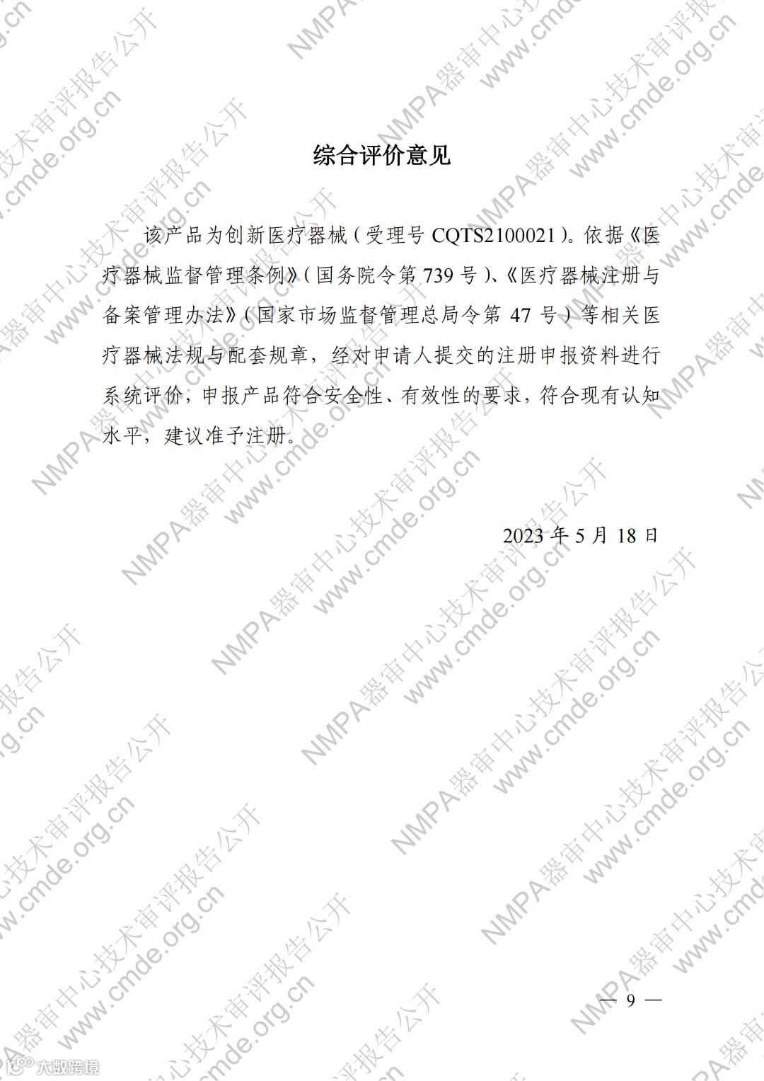 6月9日,器审中心发布了7款医疗器械产品的审评报告。