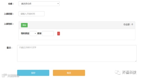 齐圣科技为甲子资产打造的仓库管理系统,仓库管理系统主要分为物料管理和办公用品管理两部分。