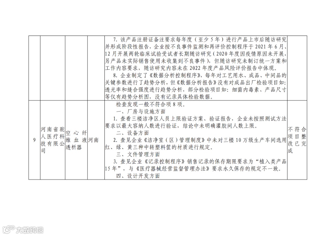 为加强医疗器械监督管理,保障医疗器械安全有效,依据《医疗器械监督管理条例》《医疗器械生产监督管理办法》《药品医疗器械飞行检查办法》《医疗器械生产质量管理规范》及相关附录,以及《食品药品监管总局关于印发医疗器械生产质量管理规范现场检查指导原则等4个指导原则的通知》(食药监械监〔2015〕218号)等要求,按照国家药品监督管理局2022年医疗器械检查工作部署,核查中心于2022年4月-7月组织开展了医疗器械生产企业飞行检查工作,发现北京先瑞达医疗科技有限公司等12家企业存在一般项目不符合《医疗器械生产质量管理规范》及相关附录要求,详情如下:
