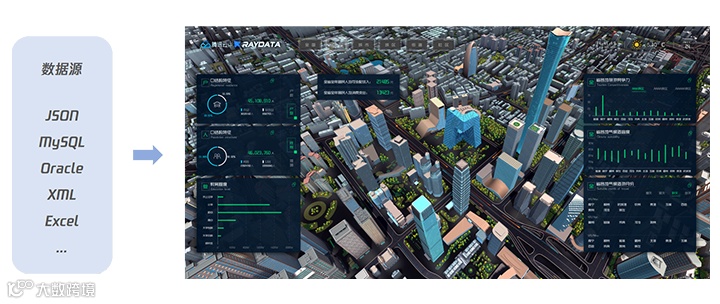 利用工具强大的实时渲染能力和节点化搭建方式,完成三维场景材质、灯光、环境等效果 渲染工作,当然也可以直接使用RayData团队提供的具备一定效果的城市场景文件,支持再次编辑哦;空间数据主要指3D场景内的静态和动态数据,如网格化数据、定位点数据、 热力图数据、范围分布数据等。