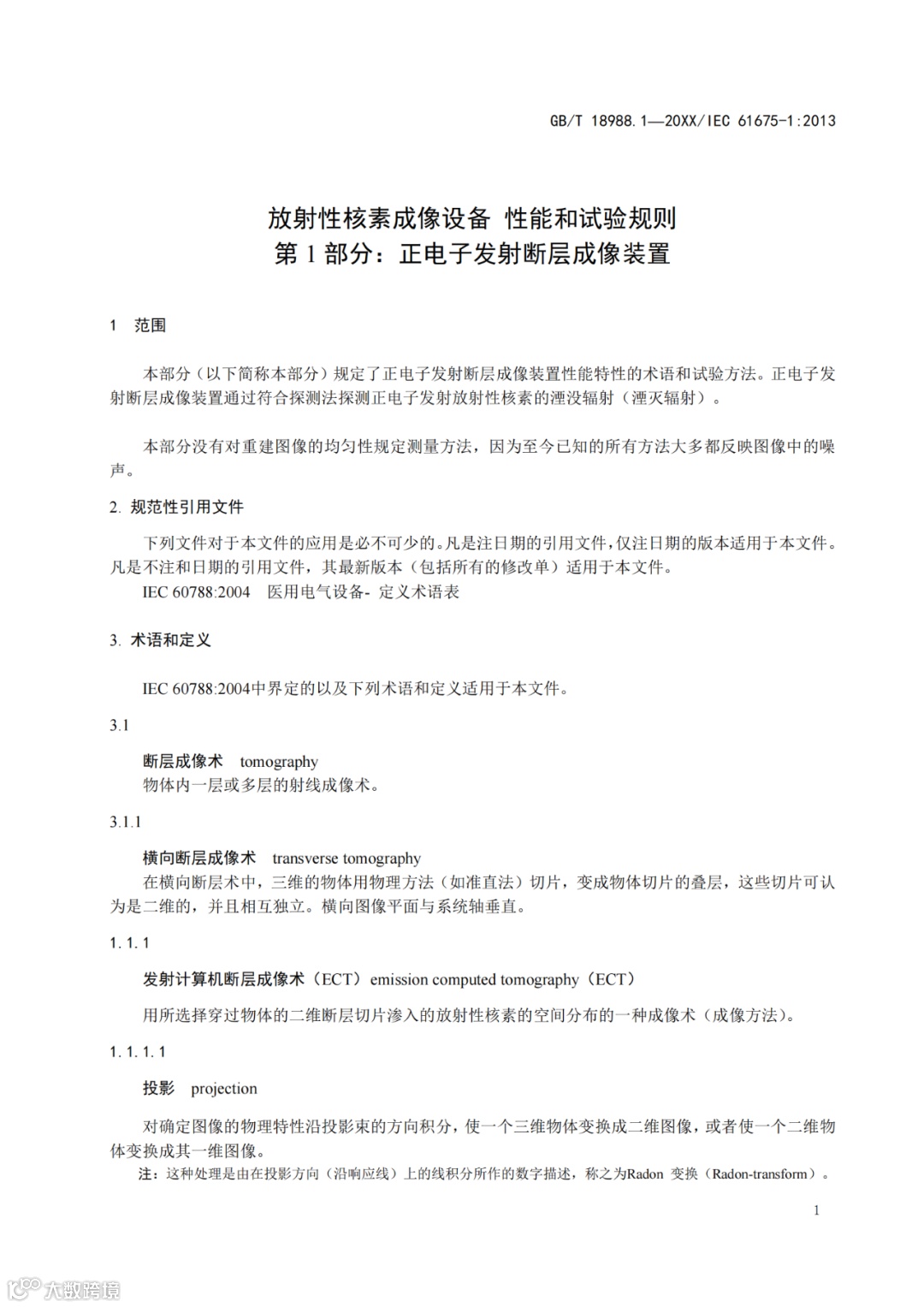 为进一步做好医疗器械标准立项工作,根据《医疗器械标准制修订工作管理规范》的要求,全国医用电器标准化技术委员会放射治疗、核医学和放射剂量学设备分技术委员会(SAC/TC10/SC3)结合医疗器械发展方向、监管和产业需求,以及国际标准转化等相关要求,计划申报《放射性核素成像设备 性能和试验规则 第1部分:正电子发射断层成像装置》等6项国家标准项目。