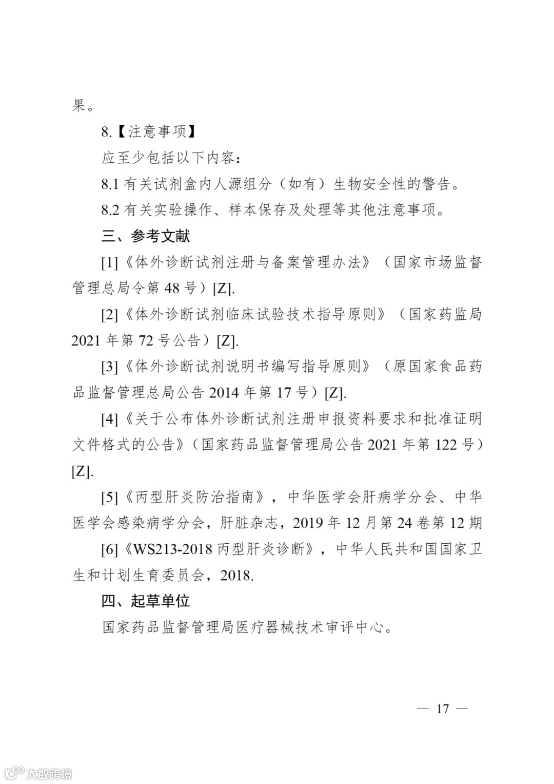 根据国家药品监督管理局2022年度医疗器械注册审查指导原则制修订计划的有关要求,器审中心组织编制了《非血管自扩张金属支架系统注册审查指导原则(征求意见稿)》、《血管内回收装置注册审查指导原则(征求意见稿)》、《疝修补补片产品注册审查指导原则(2022年修订版)(征求意见稿)》、《接触镜护理产品注册审查技术指导原则(2022年修订版)(征求意见稿)》、《寨卡病毒核酸检测试剂注册审查指导原则(征求意见稿)》、《布鲁氏菌IgM/IgG抗体检测试剂注册审查指导原则(征求意见稿)》、《丙型肝炎病毒抗体检测试剂注册审查指导原则(征求意见稿)》、《基于高通量测序技术的非小细胞肺癌相关基因变异检测试剂临床试验注册审查指导原则(征求意见稿)》,并向社会公开征求意见。
