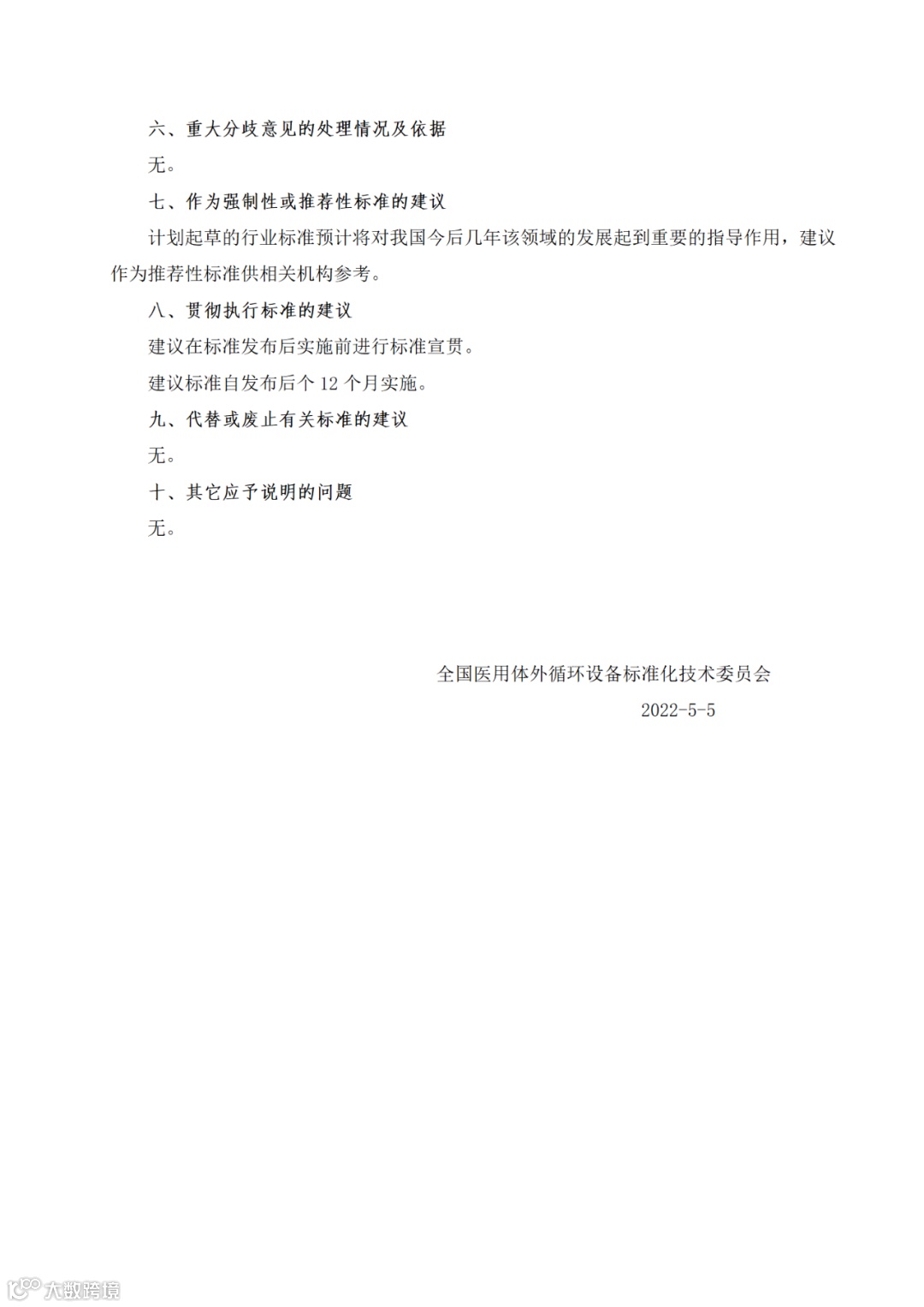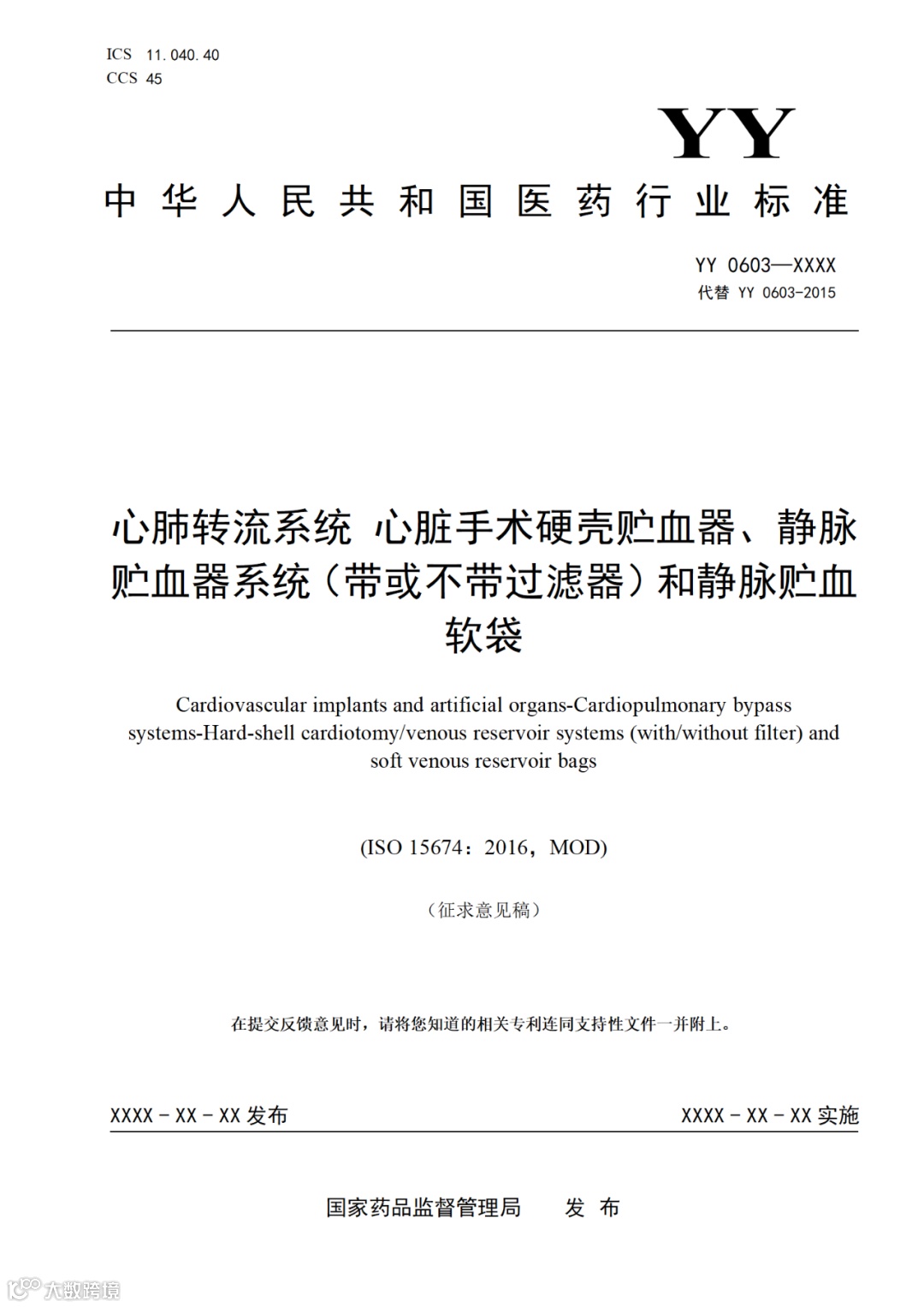 根据2022年医疗器械标准制修订计划,全国医用体外循环设备标准化技术委员会归口的1项国家标混、4项行业标准已完成征求意见稿编制,并公开征求意见。
