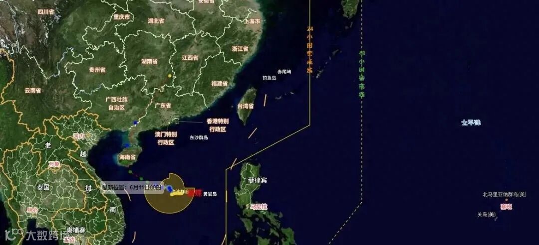 受台风 “蝴蝶” 影响,6 月 11 日 8 时至 12 日 8 时,巴士海峡、南海大部、北部湾、琼州海峡、南沙群岛、中沙群岛、广东沿海、海南岛沿海将有 6 至 8 级大风,南海中西部、西沙群岛附近海域的风力将有 9 级,阵风可达 10 至 11 级。同时,广东中西部沿海、广西沿海、海南岛大部、西沙群岛等地有大雨,其中,海南岛中东部的部分地区有暴雨或大暴雨(100 至 150 毫米)。