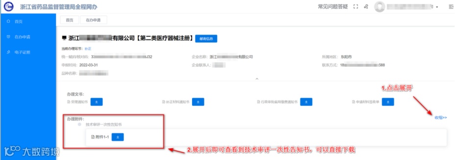 第二类医疗器械首次注册、第二类医疗器械变更注册、第二类医疗器械延续注册事项申请,在受理中心受理资料之后会相应生成《受理通知书》《行政审批缴费通知书》,各企业可通过接收到的受理或缴费短信通知内的网址登录系统查看下载。