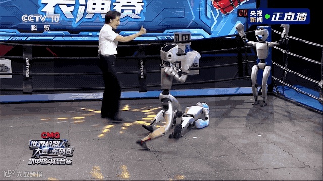 比赛进行到第三回合时,出现了戏剧性的一幕:一台机器人突然单膝跪地,像极了武侠片里的 “抱拳认输”。其实这是传感器检测到关节温度过高触发的保护机制,但在观众眼里,这简直是 “机器武士” 的礼仪。现场解说员即兴发挥:“这难道是机器人界的‘点到为止’?”