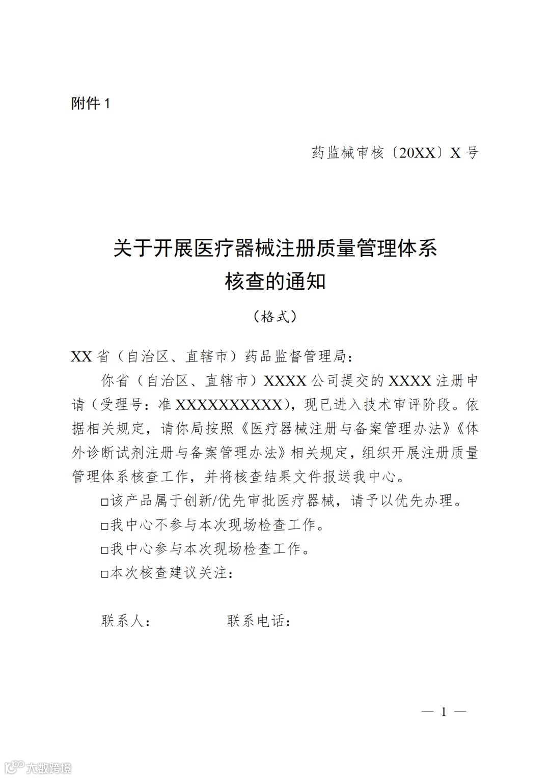 第四条 国家局器械审评中心在医疗器械注册申请受理后10个工作日内,将注册质量管理体系核查通知、注册质量管理体系相关资料、注册申请表电子版发送至相应省、自治区、直辖市药品监督管理部门(跨省委托生产产品仅发至注册申请人所在地药品监督管理部门)。国家局器械审评中心参与核查的,在通知中告知省、自治区、直辖市药品监督管理部门(通知格式见附件1)。涉及跨省委托生产的,由注册申请人所在地省级药品监督管理部门协商受托生产企业所在地药品监督管理部门联合开展或委托开展现场检查,受托生产企业所在地药品监督管理部门应当予以支持配合。