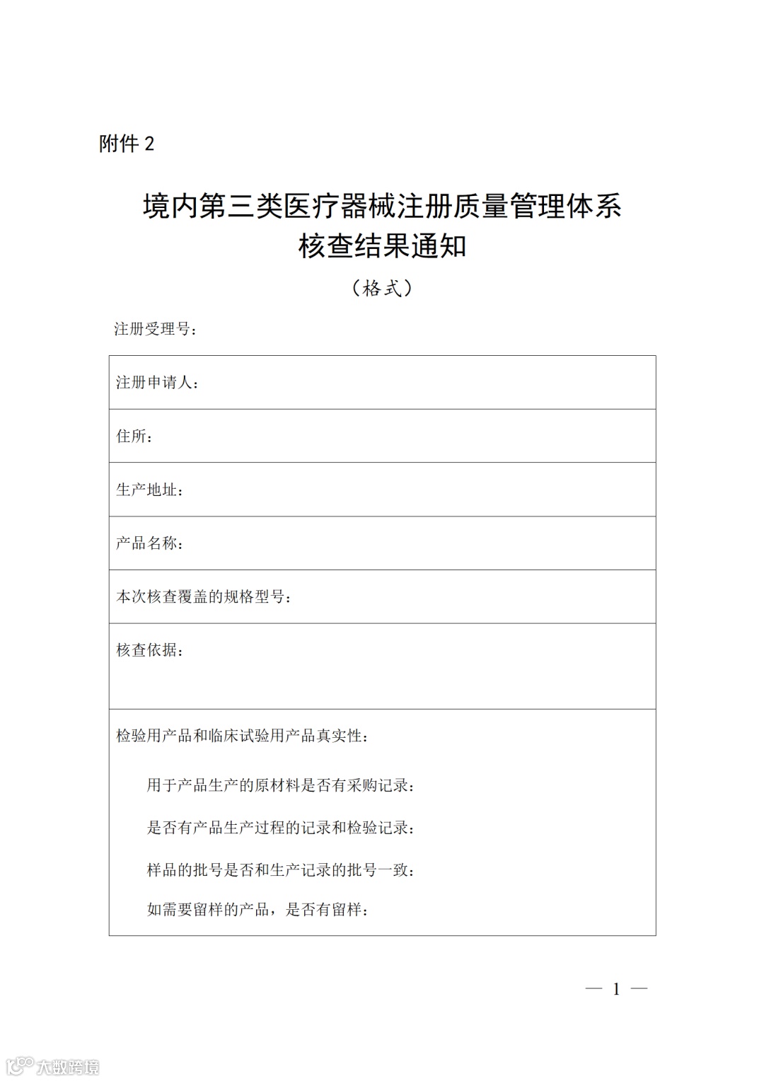 附件2:境内第三类医疗器械注册质量管理体系核查(格式)