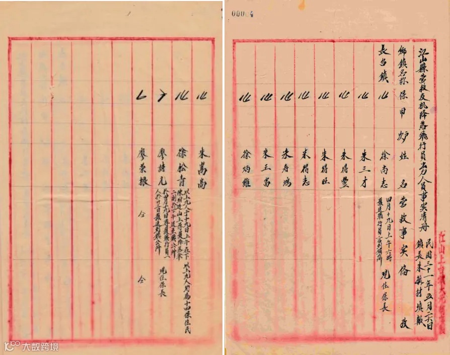 在江山市档案馆,保存着一批珍贵的档案,详细记录了江山民众营救杜立特轰炸机队飞行员的经过。其中有一份《江山县营救友机飞行员出力人员事迹清册》,清晰地罗列了参与营救人员的姓名、年龄、籍贯以及所做的贡献。