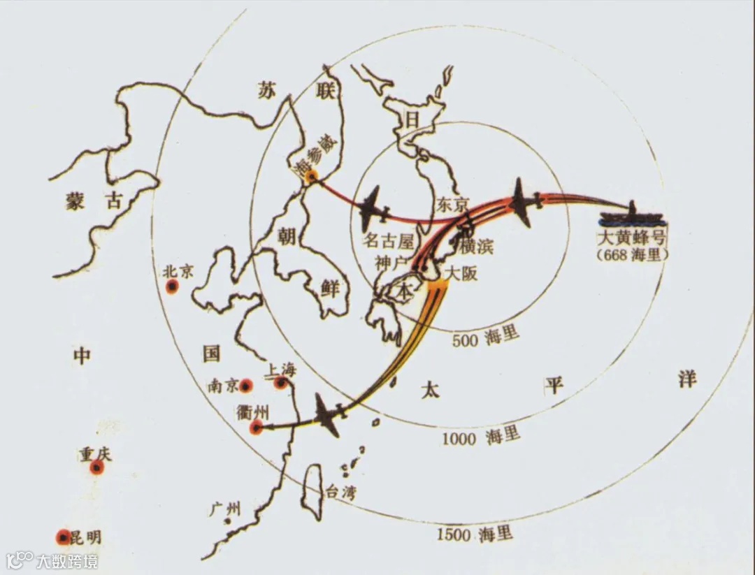 杜立特空袭队飞行路线示意图