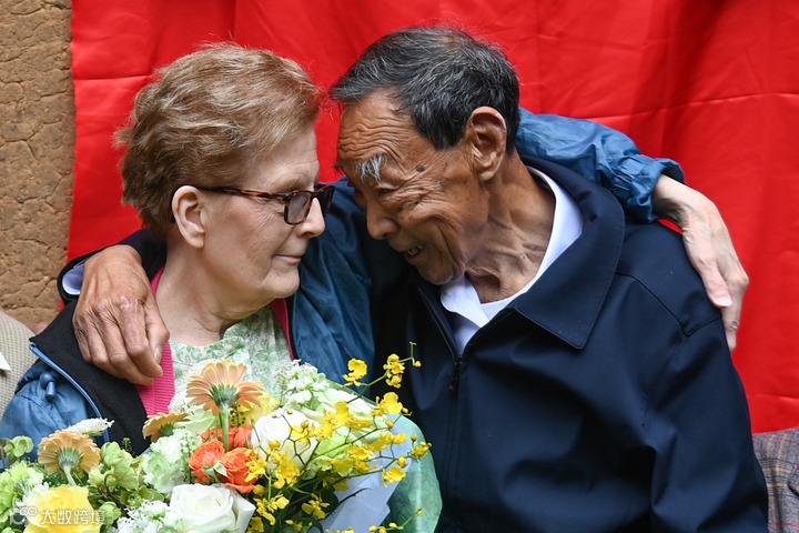 在衢州江山市张村乡龙头店村小南坑自然村,苏珊·奥祖克(左)与村民廖明发相拥