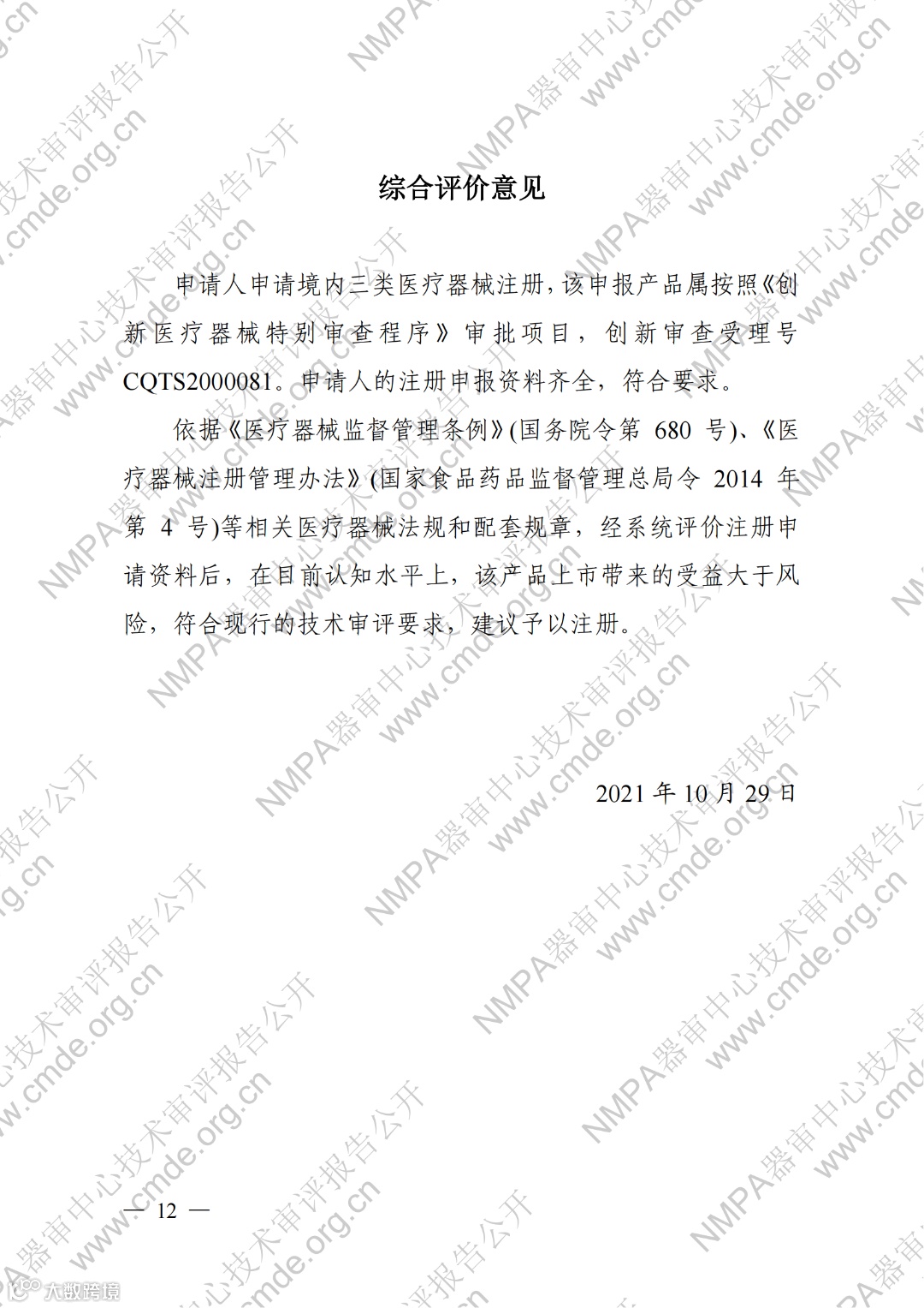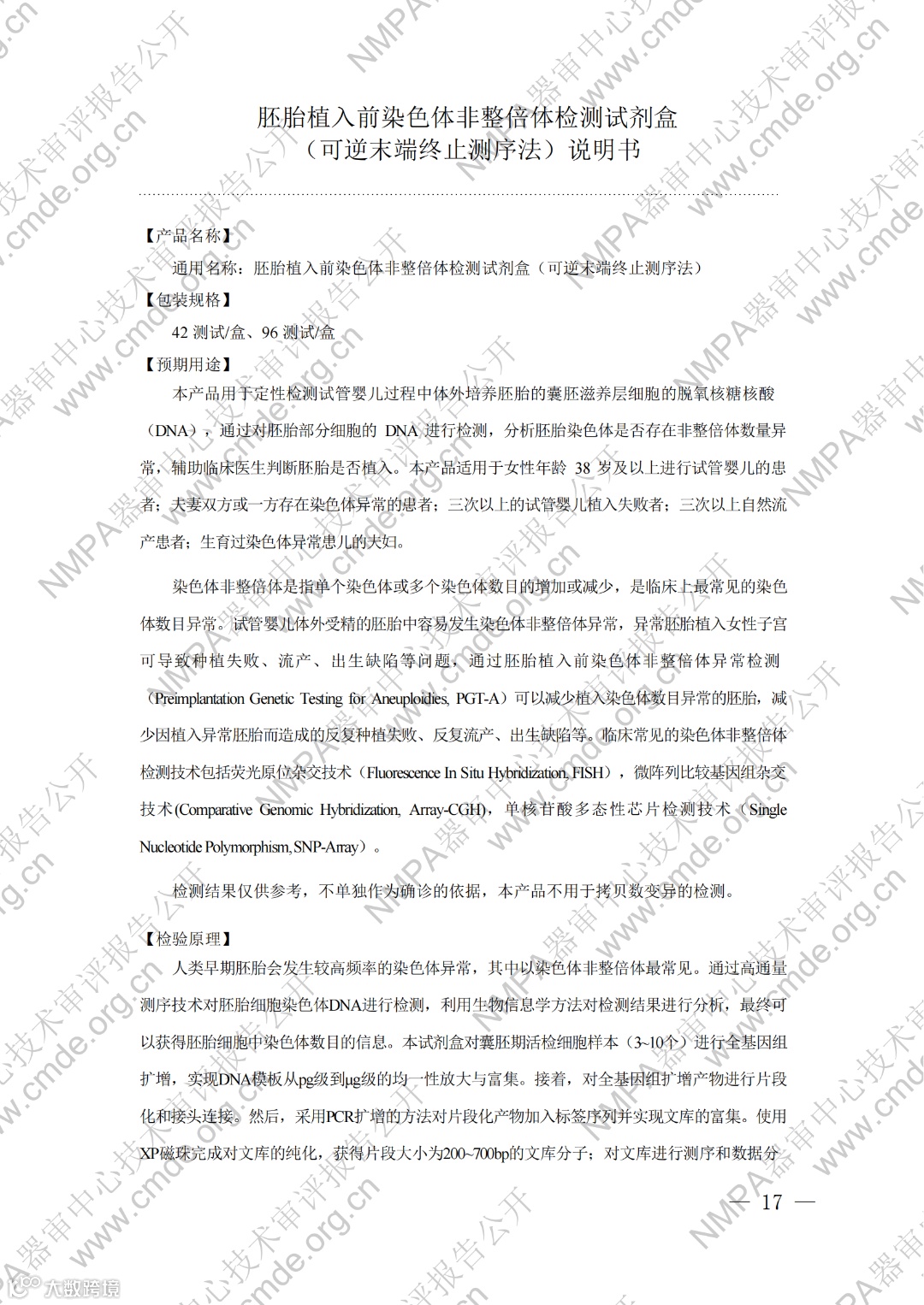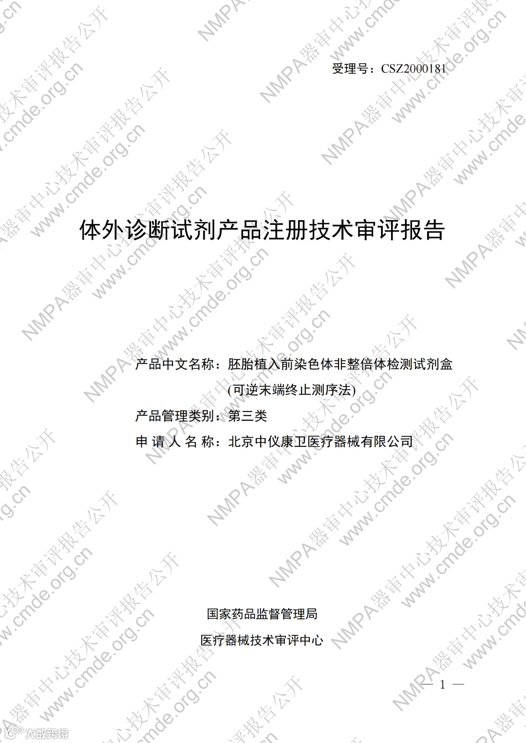 今日,器审中心公开了“胚胎植入前染色体非整倍体检测试剂盒(可逆末端终止测序法)”等5项产品的审评报告,详情如下: