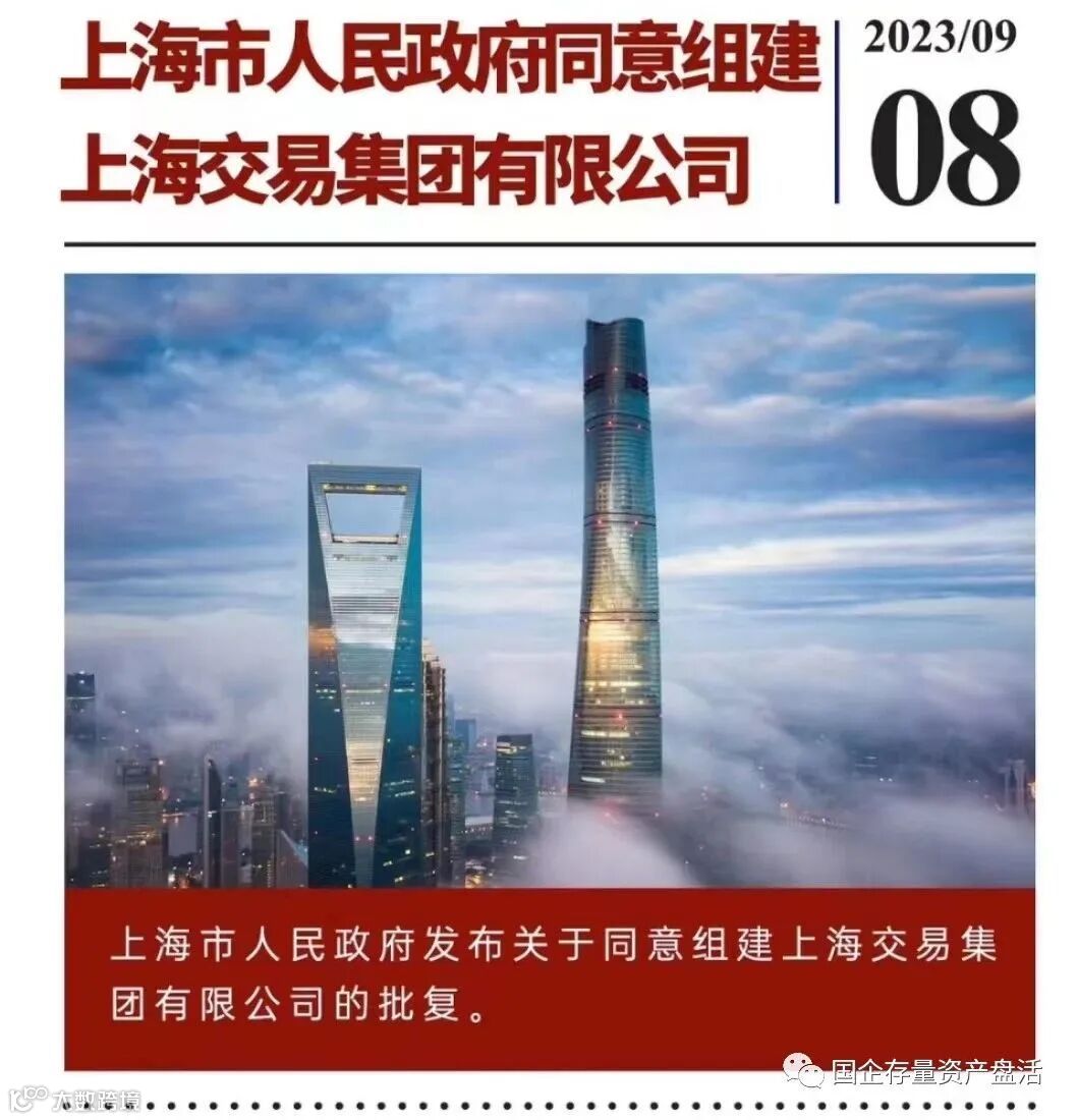 9月8日,上海市政府官网发布上海市人民政府关于同意组建上海交易集团有限公司的批复。其中表示,经研究,上海市政府同意组建上海交易集团有限公司。请上海市国资委按照规定程序,依法办理注册登记等手续。