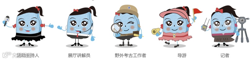 小塔形象包括活动主持人(主形象),展厅讲解员,野外考古工作者,导游,记者,代表罗塞塔档案文化方向,知识板块包括#文明印记,#行业热点,#活动总结。