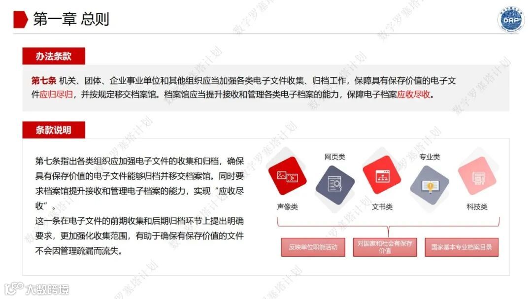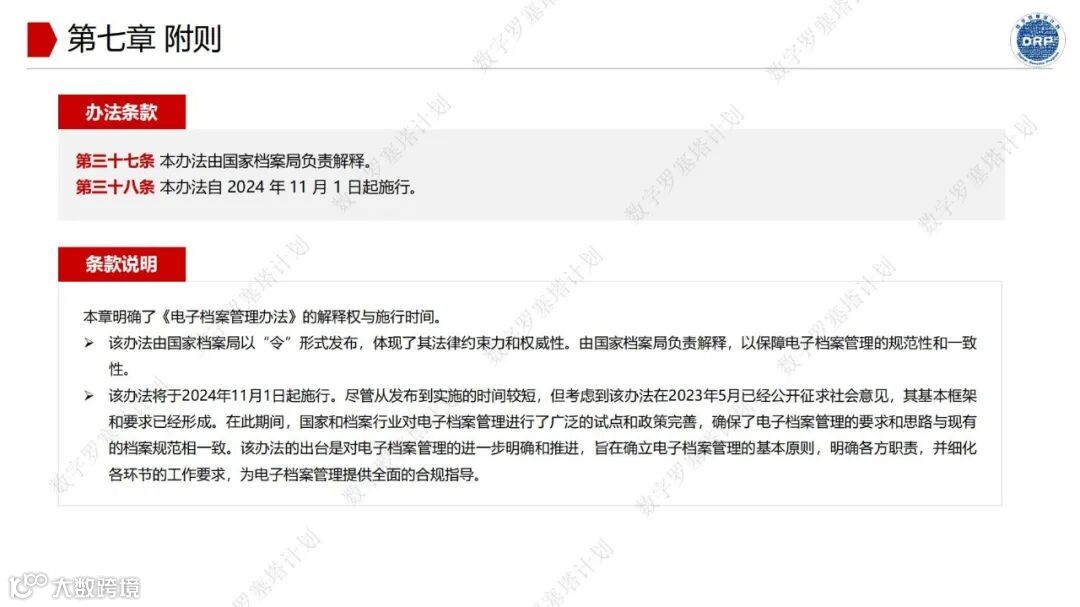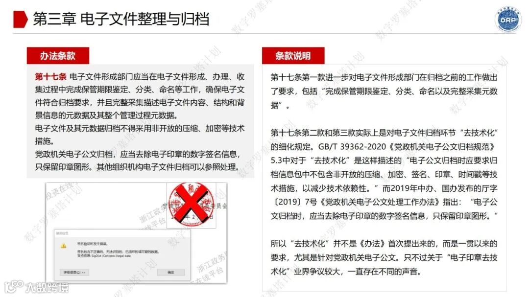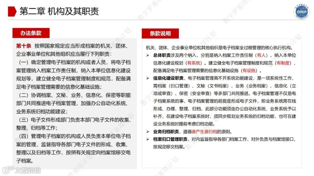 杨安荣博士对22号令的七个章节、三十八项条款逐一分析,结合多年在电子文件归档和电子档案管理领域的实践经验深入浅出地阐述其核心要点。