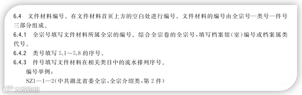 《规范》明确的“全宗号-类号-件号”编号结构,对于档案业务量小的单位是合适的,档案业务量大的单位,多年积累后编号数值较大,其实也难适应。