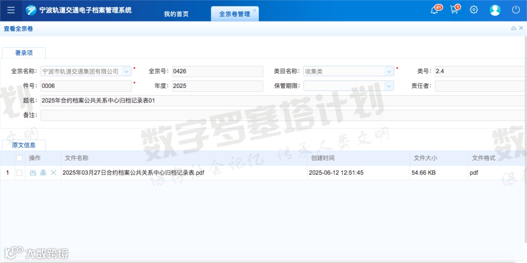 本篇是参加由宁波市档案学会联合数字罗塞塔计划发起的贯彻《电子档案管理办法》优秀实践案例交流活动的投稿文章,来自宁波市轨道交通集团有限公司,作者:徐赐珍、俞沁文、吴墀忠。