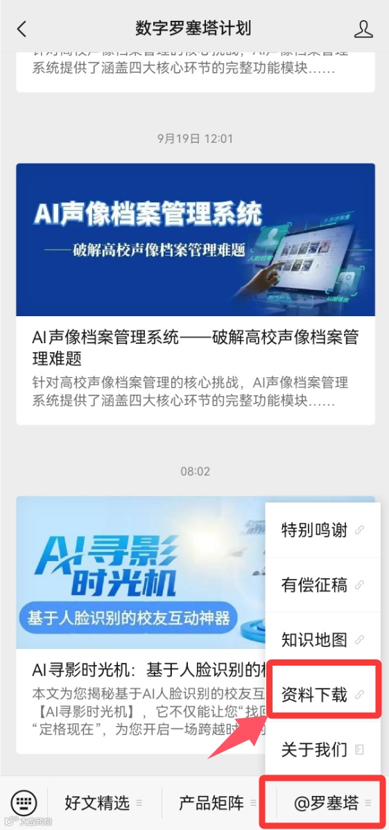 数字罗塞塔计划公众号菜单栏“@罗塞塔”——“资料下载”