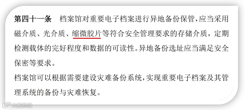 可能很多人会觉得奇怪,缩微胶片(※注:本文中缩微胶片既包括传统缩微胶片,也包括数字胶片,以下统称为“缩微胶片"或“胶片”)感觉已经是完全跟不上时代,即将被淘汰的存储介质,为什么今年发的这么高规格的两个法规文件中依然让其与当前流行的、正如日中天的“磁介质”、“光介质”并列作为重要电子档案的备份介质?是因为缩微胶片的保存年限特别长吗?