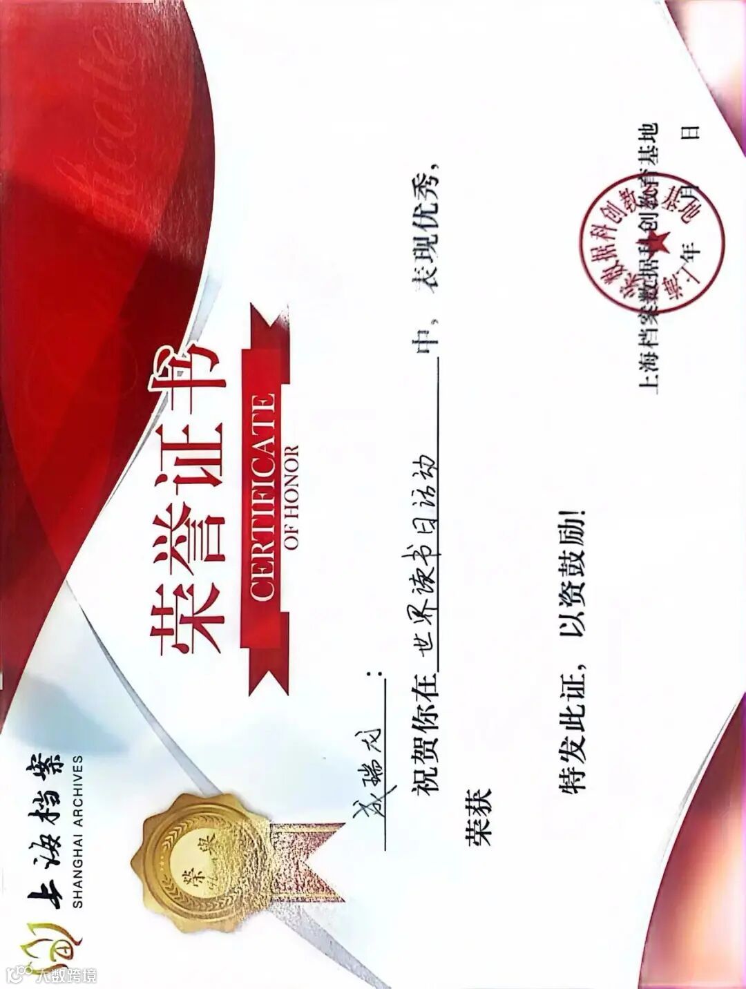 上海档案数据科创基地活动参与证书