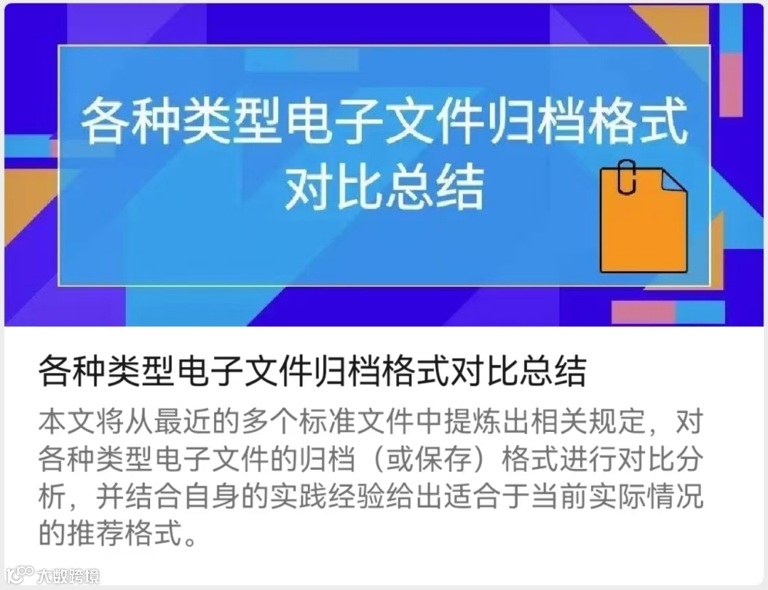 10月18日,本号发布文章《各种类型电子文件归档格式对比总结》,可以说是一举击中了电子文件和电子档案管理从业人员的痛点,引起了群友们的热议。