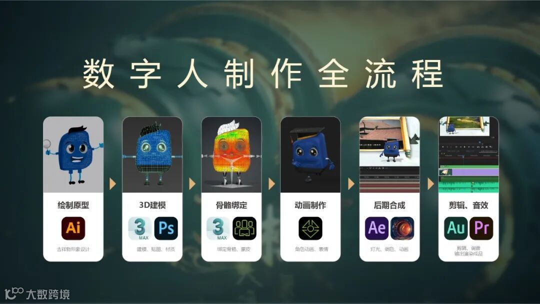 数字人的诞生一般会经历以下几个步骤:数字人形象设计,建模和细节雕刻,骨骼绑定和渲染,动画制作,视频合成以及后期制作和特效。