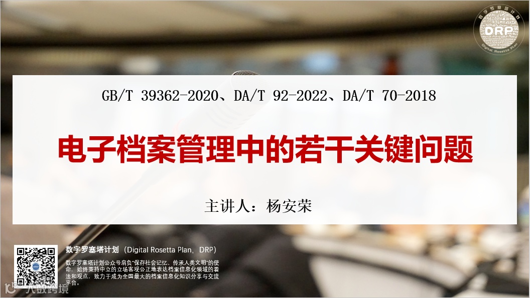 以GB/T 39362-2020《党政机关电子公文归档规范》、DA/T 92-2022《电子档案单套管理一般要求》、DA/T 70-2018《文书类电子文件检测一般要求》三个标准的解读为主线,对电子文件归档和电子档案管理中的单套管理、四性检测、电子印章、元数据方案、归档接口、OFD应用等关键问题进行深入浅出的讲解。