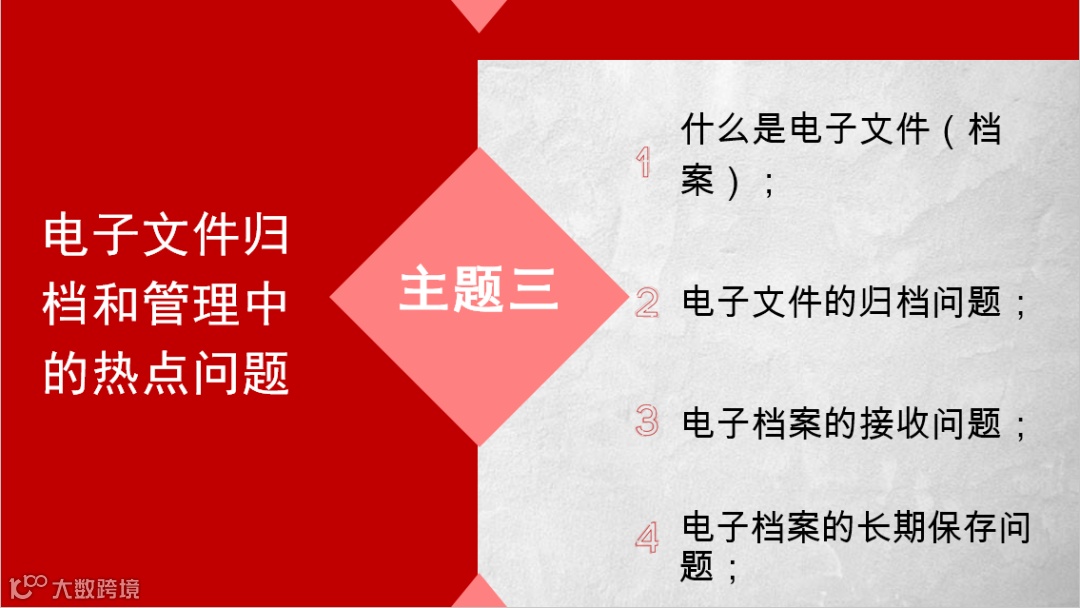 随着沪档〔2023〕66号《上海市电子公文归档和电子档案管理实施细则》的发布,上海市档案信息化建设又将掀起一轮新的建设高潮。本课程以该文件内容的解读为主题,从电子文件归档与电子档案管理的时代背景、电子档案管理的关键问题与核心要素、电子档案管理的规划设计与条件保障以及电子文件归档与电子档案管理的最佳实践四个方面进行讲解。