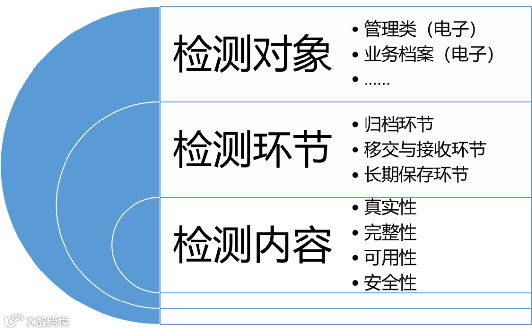 从检测对象来看,只有电子档案需要开展四性检测,但文书档案或管理类档案一般要求必须检测;从检测环节来看,一般包括归档环节、移交与接收环节、长期保存环节,总体原则是涉及到权责转移时需要进行四性检测;从检测内容来看,包括真实性、完整性、可用性和安全性检测,主要依据不同环节的检测项目及其检测结果是否符合相关要求。由于采取不同的检测依据和方法,其检测结果往往不同,而DA/T 70—2018主要针对文书类电子档案,其他类型的电子档案就需要制定各自的检测方案(检测项目、检测依据和方法)。